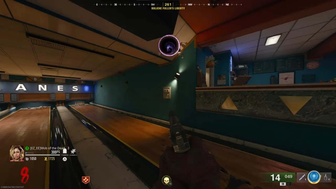 Ve al Bowling y golpea el panel ubicado dentro de este, en una de las líneas.