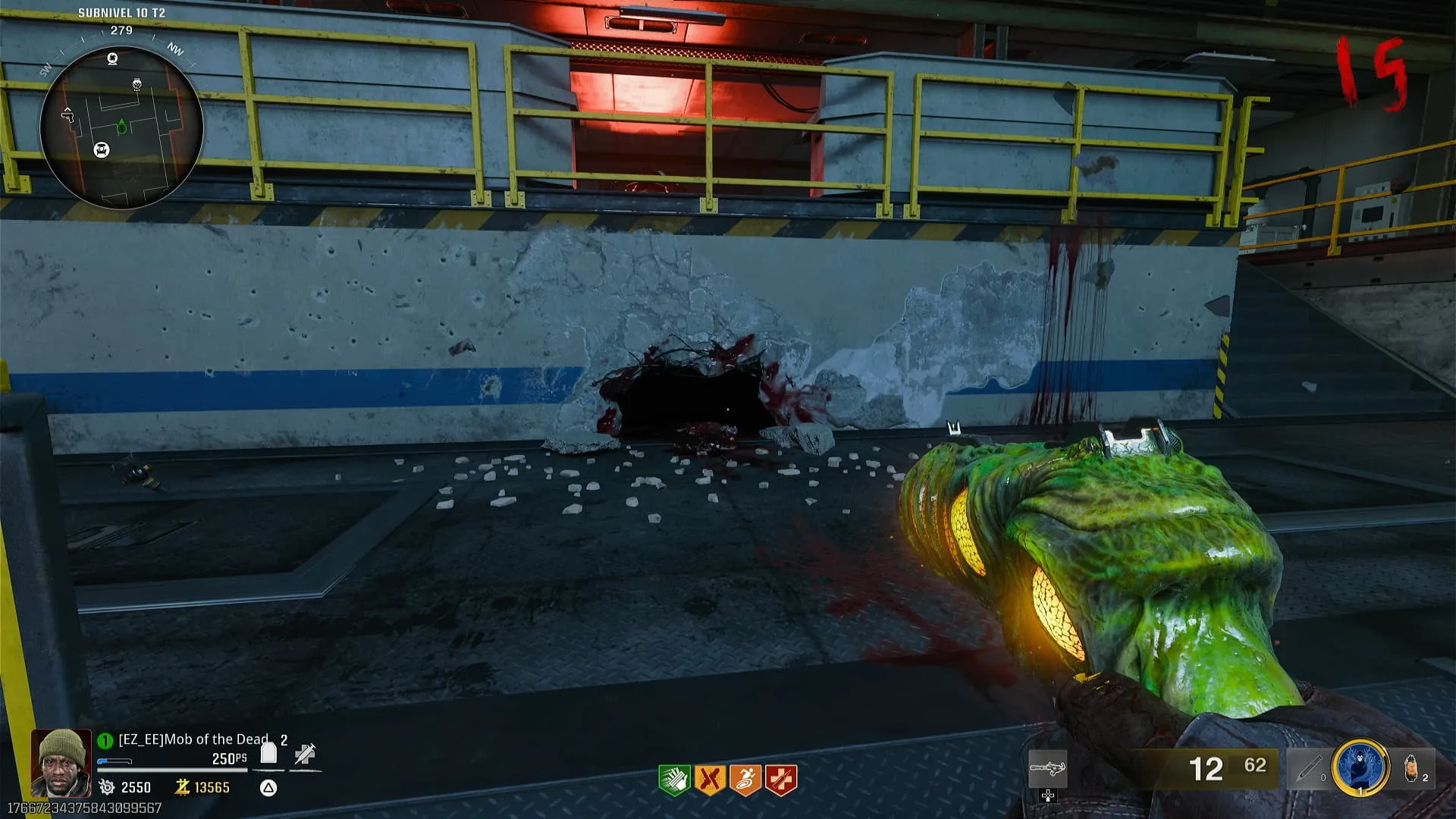 Luego debes empujar el balón hasta hacerlo llegar a un agujero de donde pueden salir zombies, que se encuentra subiendo por el primer set de escaleras desde el acelerador de partículas, del mismo lado de la máquina de chicles.