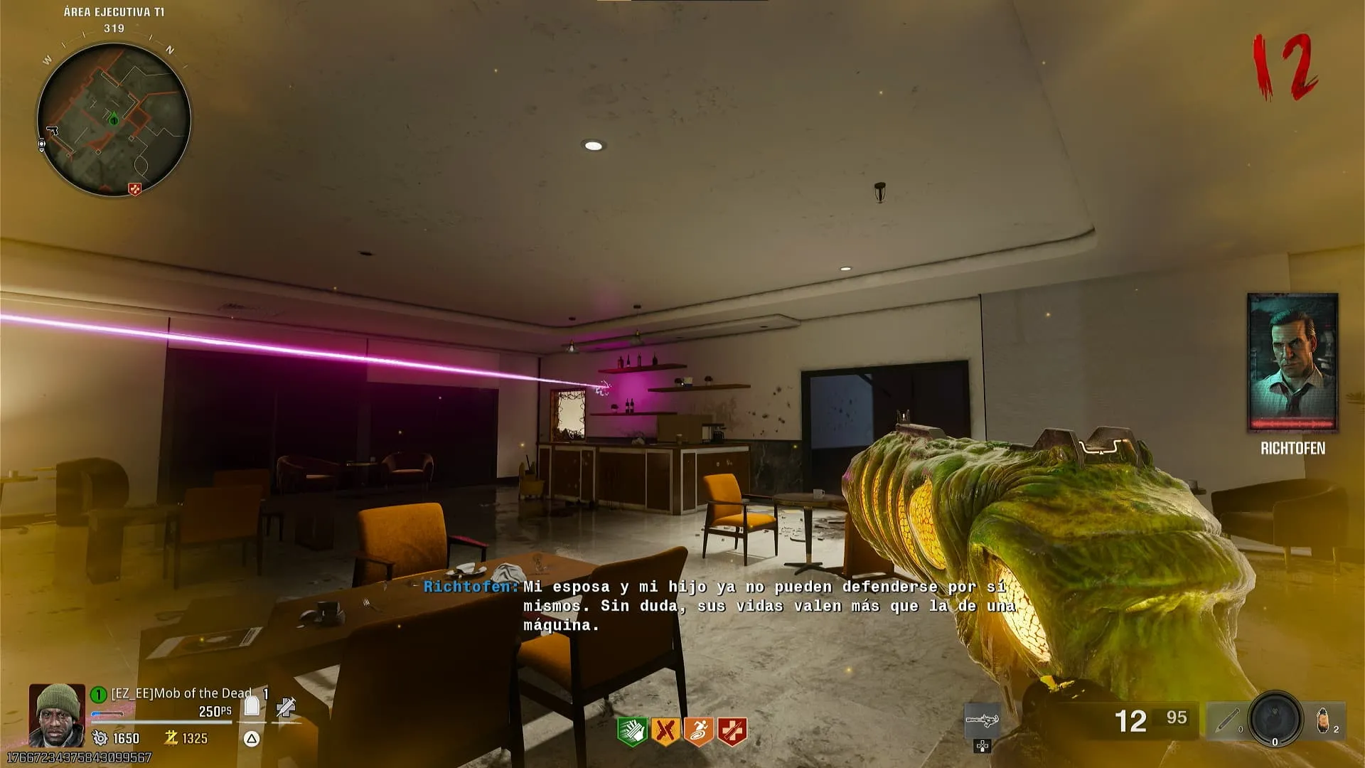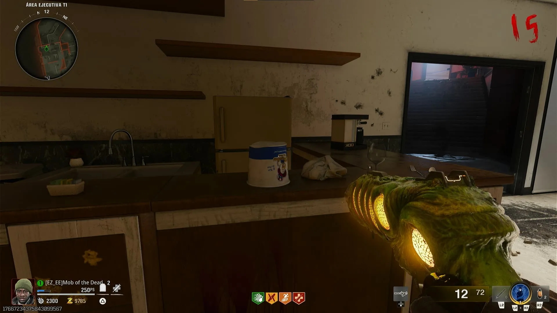 - Hay una cubeta de pollo frito ubicado en un bar de Area Ejecutiva T1. Si el jugador le lanza una granada letal, la cubeta saldrá volando al mostrador junto con 6 piezas de pollo que tendrás que buscar alrededor de esta zona.