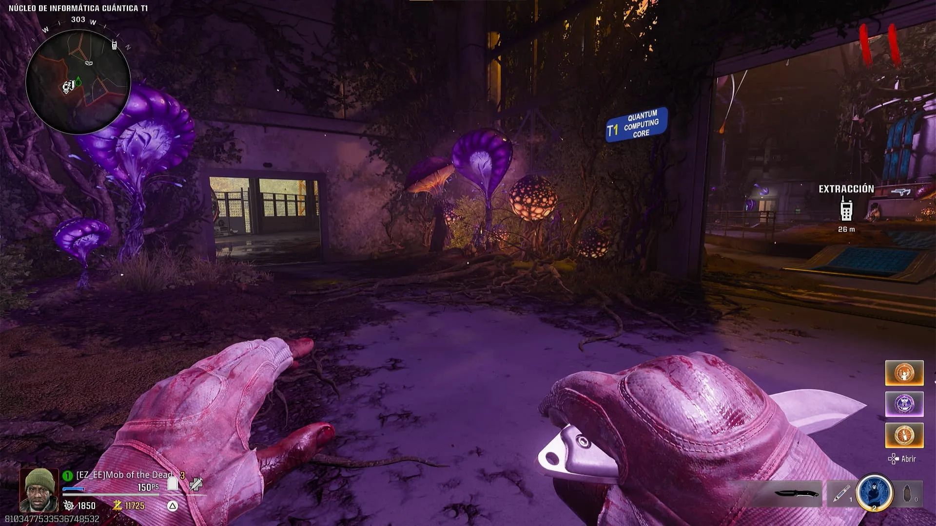 - Ve a Núcleo de Informática Cuántica T1, al acercarte a una de tres especificas floras veras como tu personaje saca el quiste para darle poder. Debes hacer drenarle toda la energía a estas floras las cuales escupirán acido al suelo que hace daño.