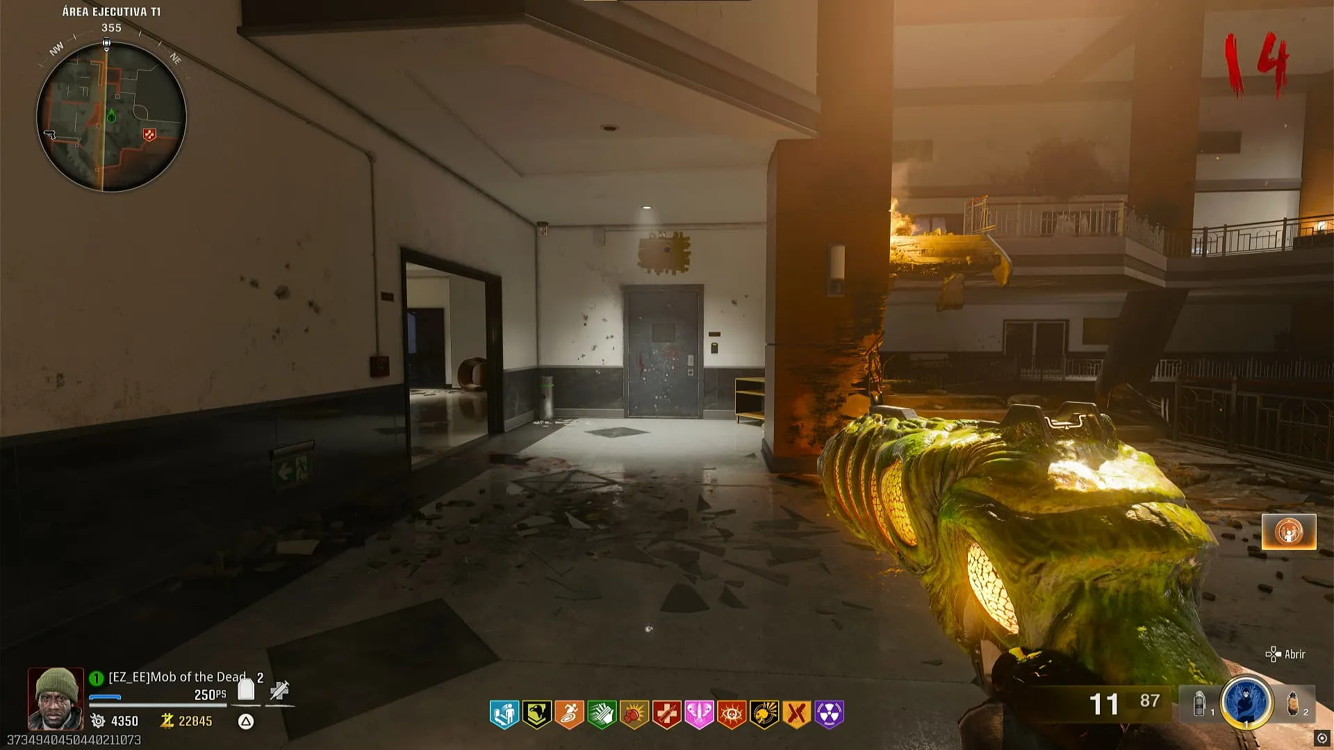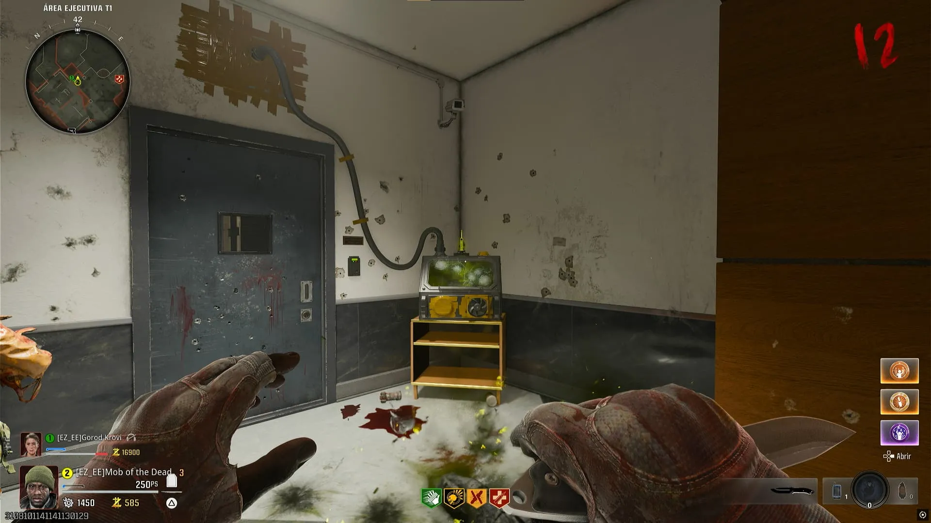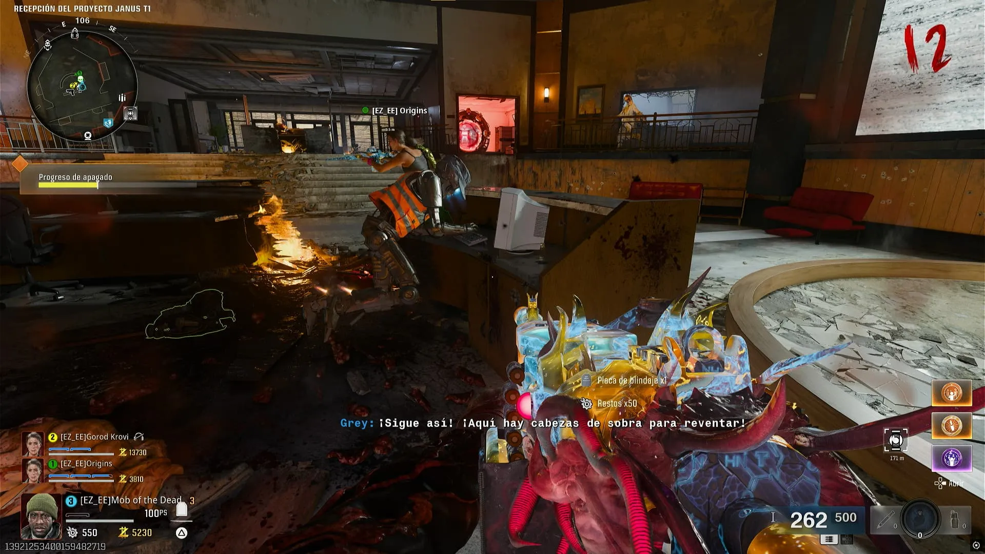 - Zombies con un aura azul empezaran a salir dentro de esta zona, los cuales debes matar utilizando la Gorgofex