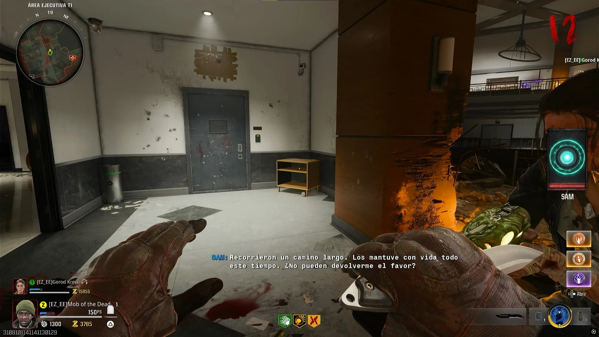 - En este caso ayudaremos a Blanchard. Interactúa con un botón rojo en la Sala Inicial, cerca del portal que te lleva a Pack-A-Punch.