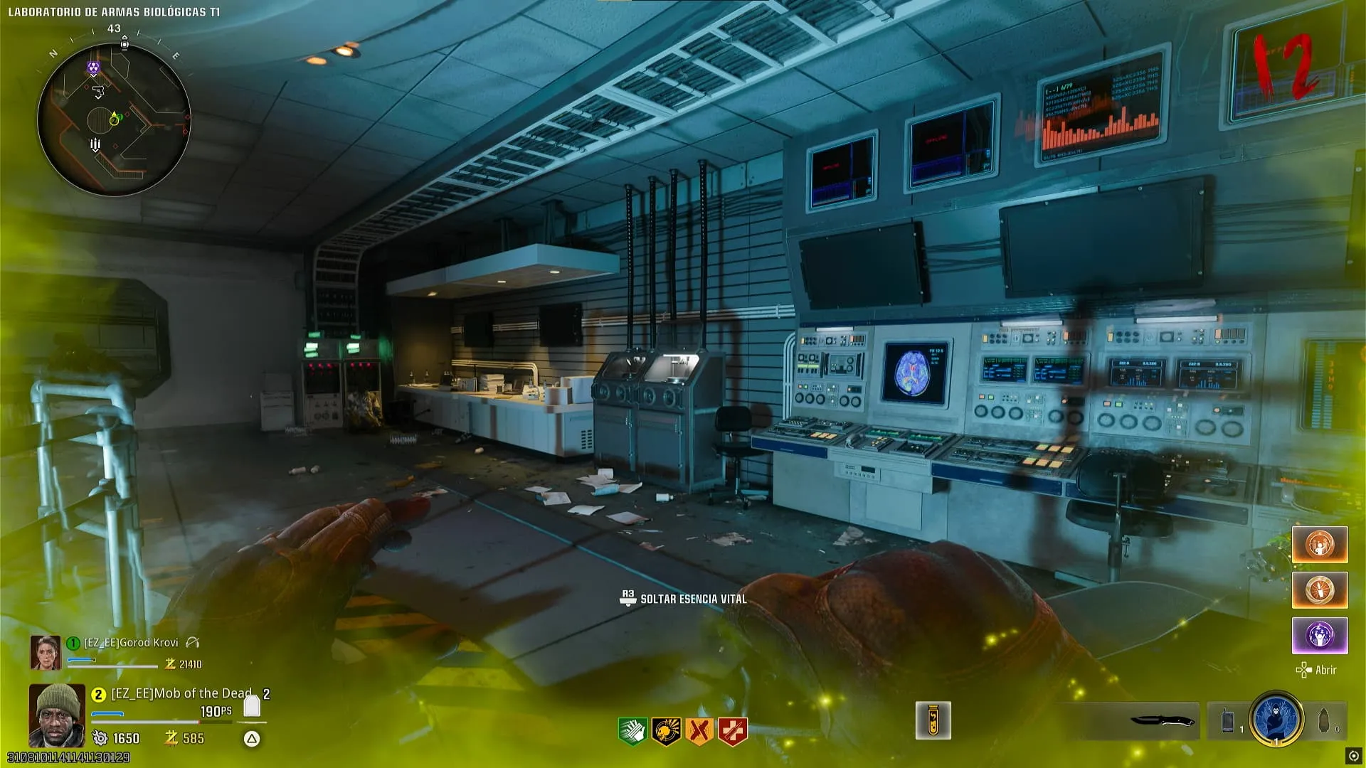 - Activa Pack-A-Punch y ve a Análisis Mutante T1 en donde se encontrarán dos monitores con estática que durante un breve tiempo mostrarán una palabra que debes anotar.
