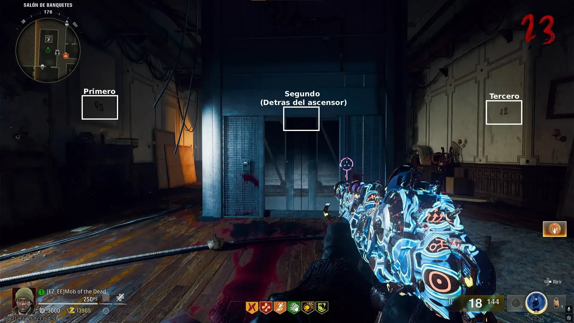 - Ritual de Ray Gun Mark II-W (La de azul automática). Dirígete a Salon de Banquetes y recoge una lampara que se encuentra dentro de una caja apenas llegas a esta zona.