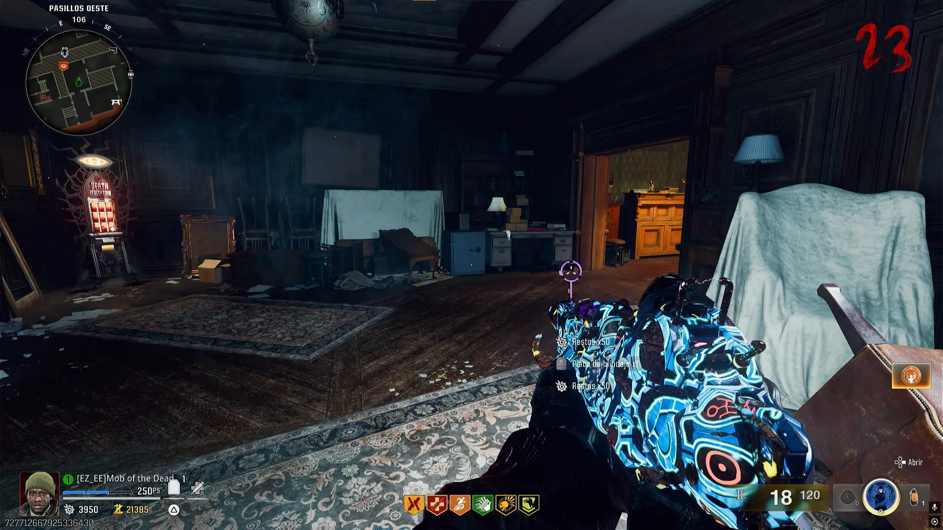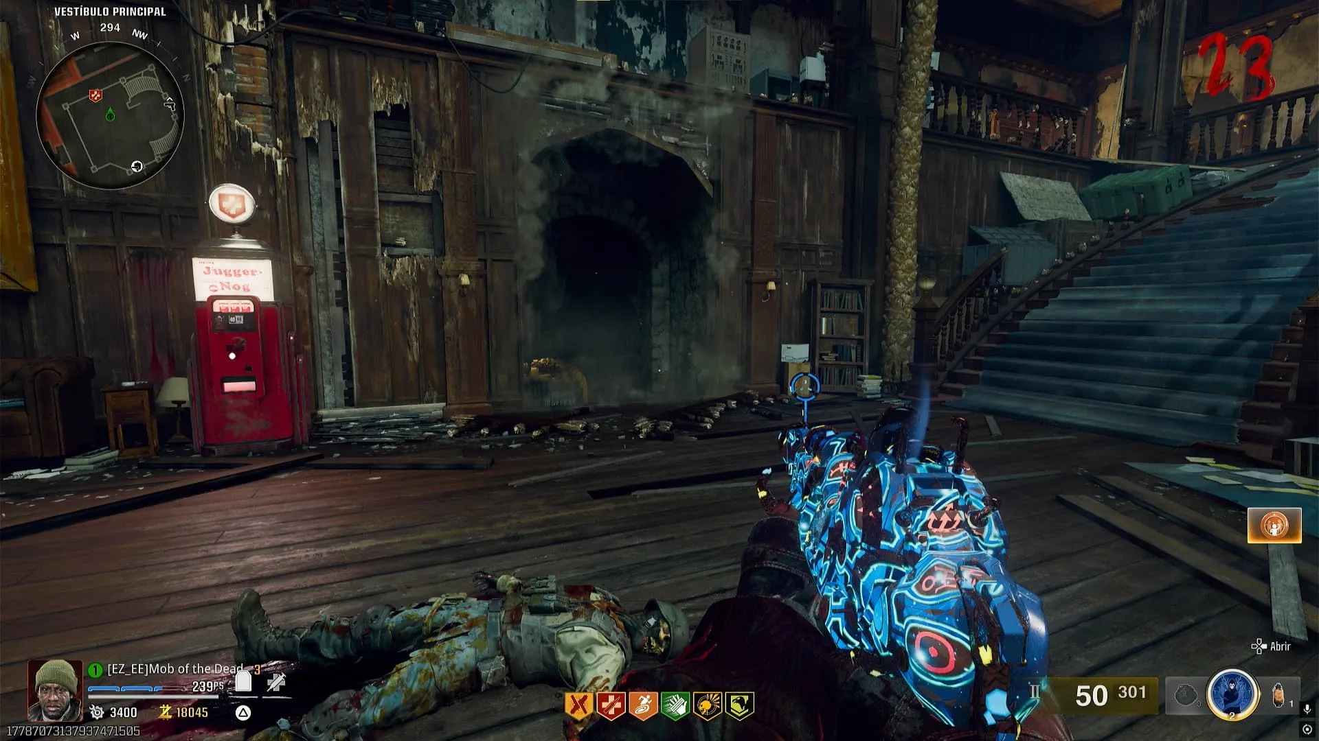 - Interactúa con una computadora dentro de esta nueva zona y esta empezará a recolectar almas de los zombies que vayas matando con la Ray Gun Mark II-W. Al terminar, se abrirá un portal detrás de un cuadro.