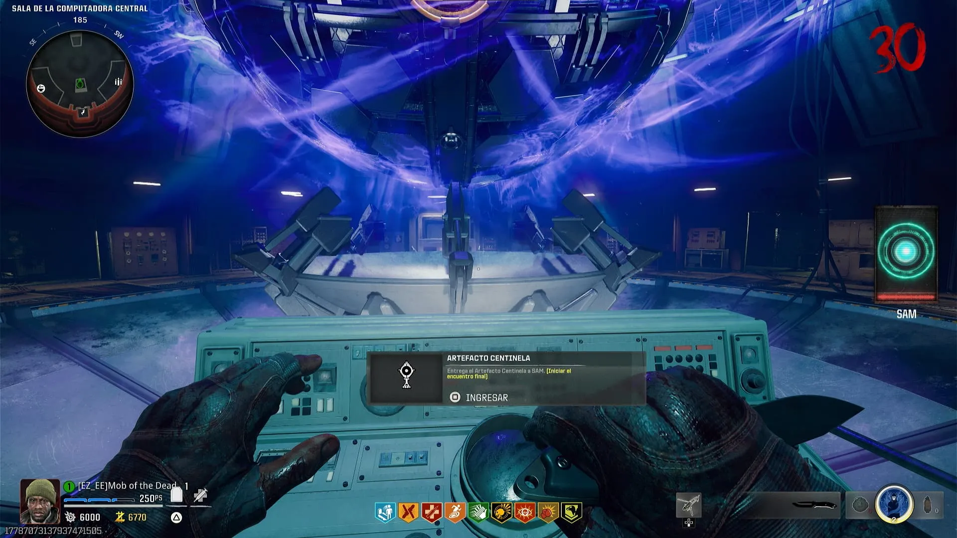 - Al terminar, dirígete a la Sala de la Computadora Central y coloca el Artefacto Centinela en una terminal frente a S.A.M. para activar la Boss Fight