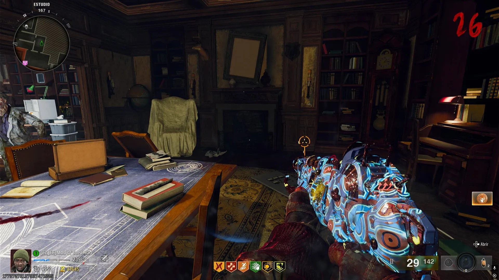 - Ritual de Ray Gun Mark II-R (La naranja semiauto). Dirígete a la Libreria e interactúa con una computadora dentro de esta zona, luego tendrás que matar zombies utilizando la Ray Gun Mark II-R para llenarla. Al hacerlo se abrirá un portal en el cuadro.
