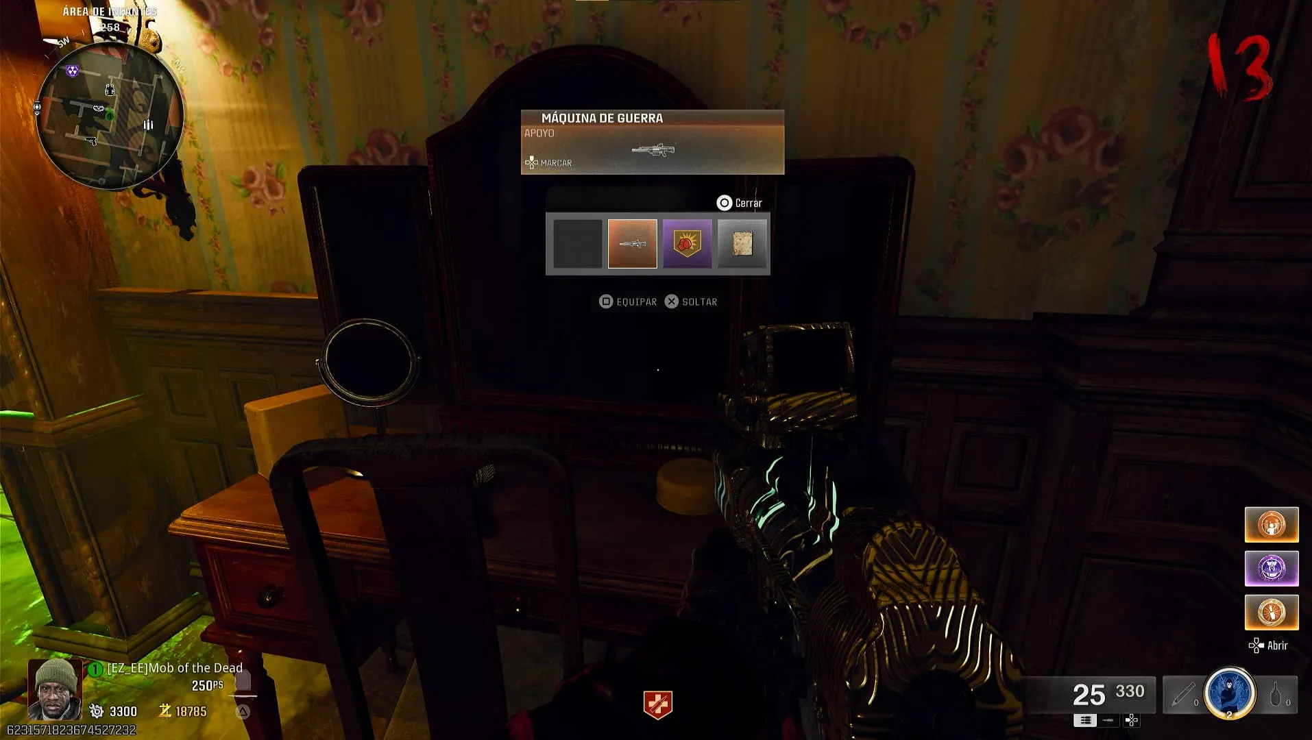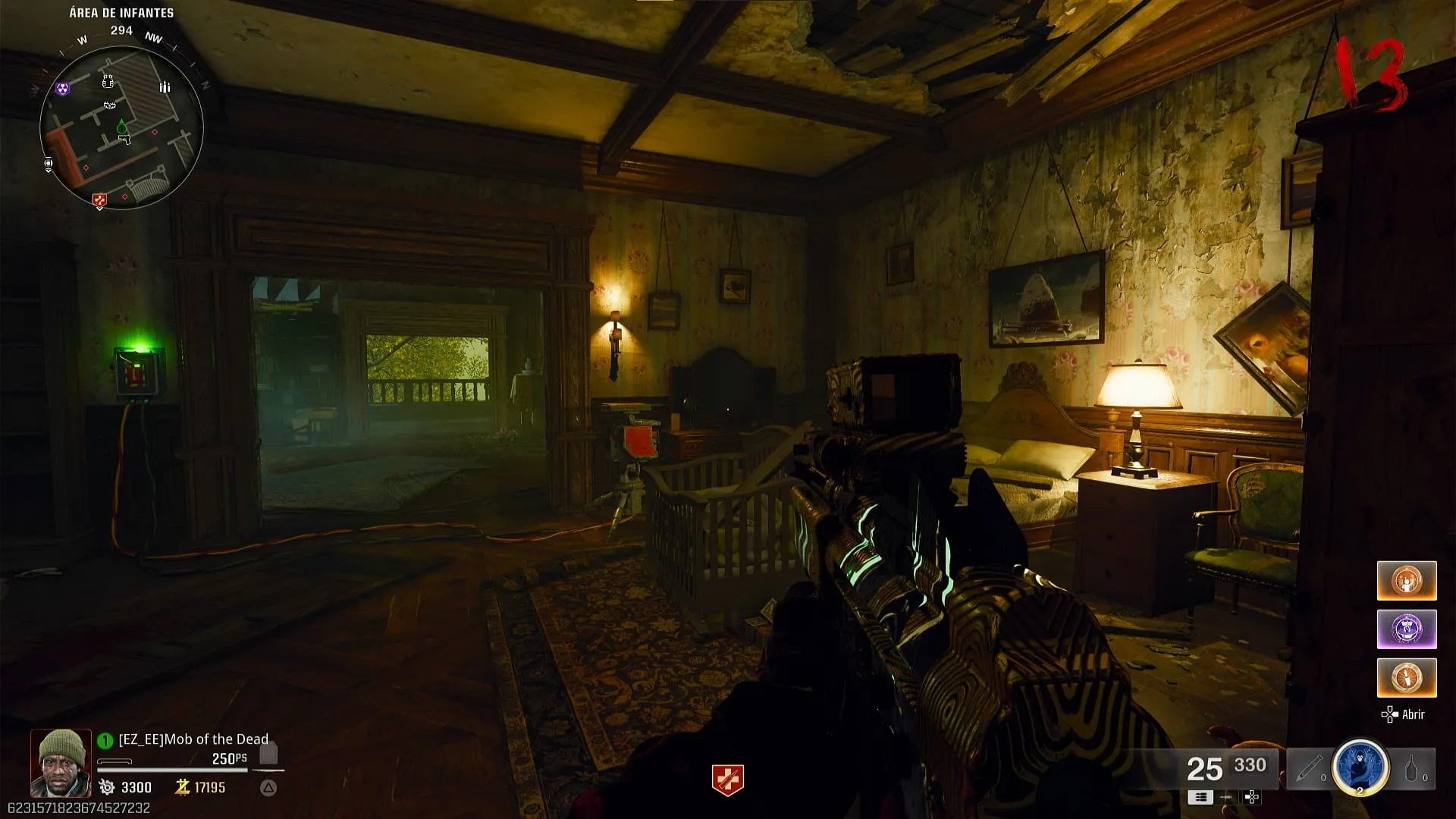 - A partir de la ronda 13, hay unas ventanas alrededor del mapa que tendrán a una mujer fantasma con ojos rojos. Tienes que apuntarle con tu arma térmica en cuatro diferentes ubicaciones donde aparecerá de manera aleatoria.