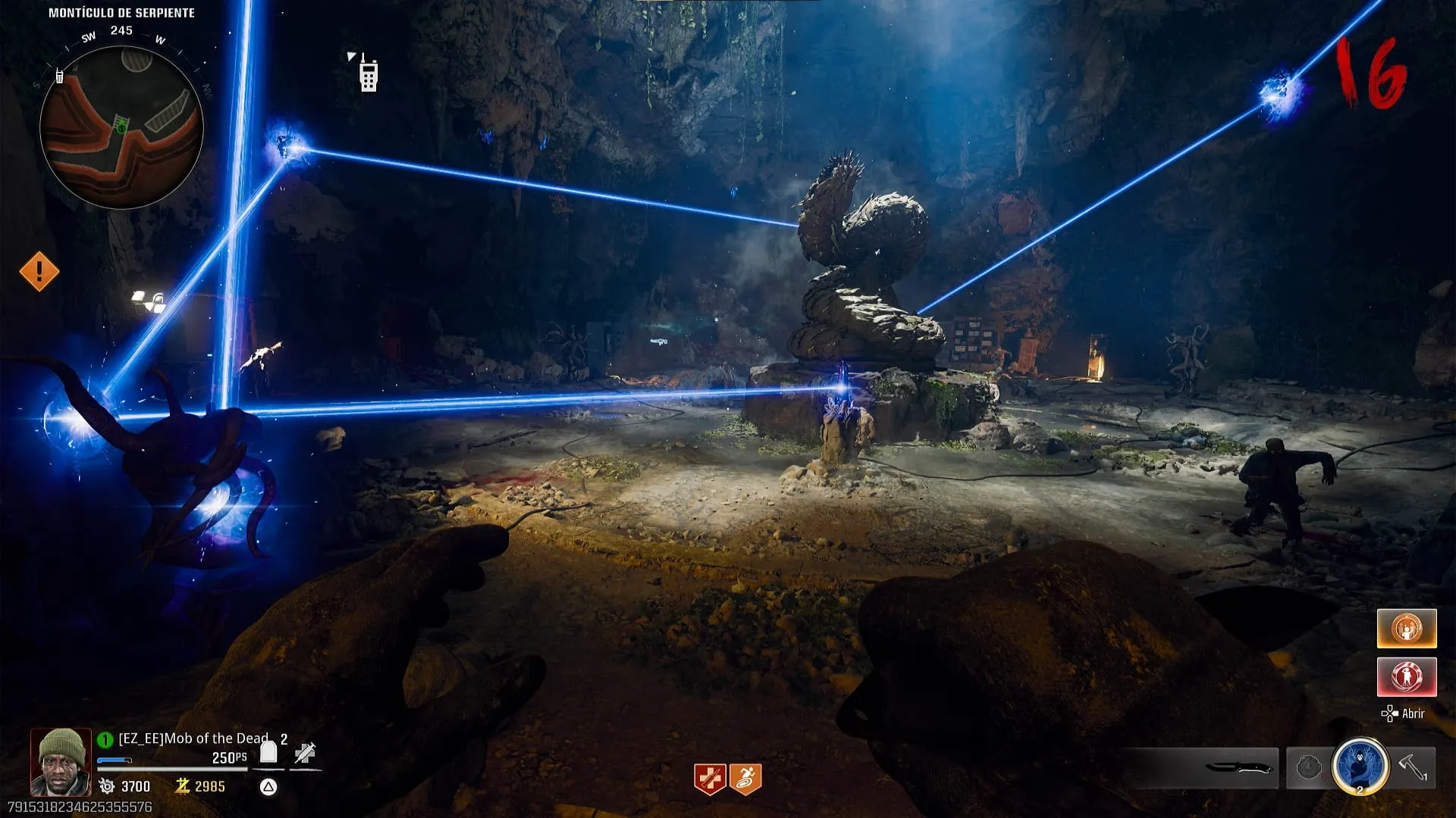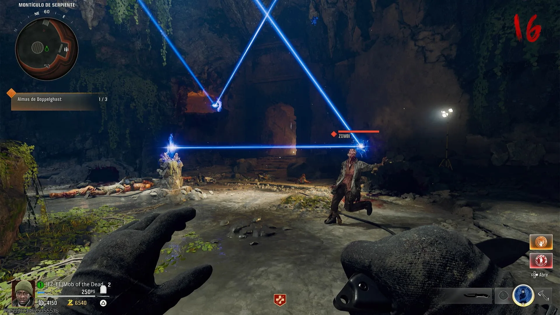 - Vuelve a la zona secreta que recién fue desbloqueada e interactúa con el dispositivo para que se active un rayo que saldrá del cristal azul