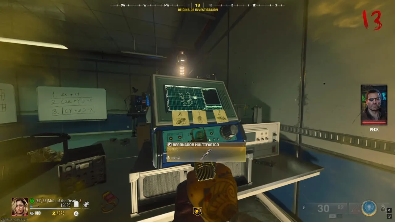 Al colocar el código correctamente, deberás esperar una ronda para que la máquina te apunte hacia un lugar del mapa (generalmente Isla Castillo Rocoso, el de la derecha). Recoge el Resonador Multifásico y ve hacia el lugar indicado.