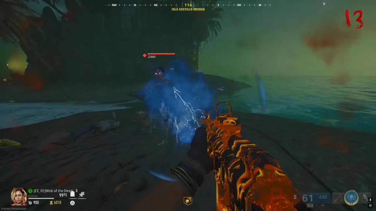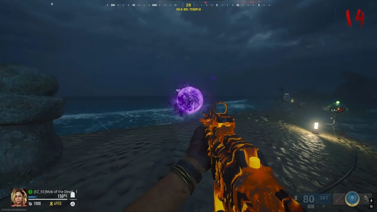 Al ir a la isla, encontrarás un orbe que, al interactuar con él, hará que aparezca una horda de zombies.