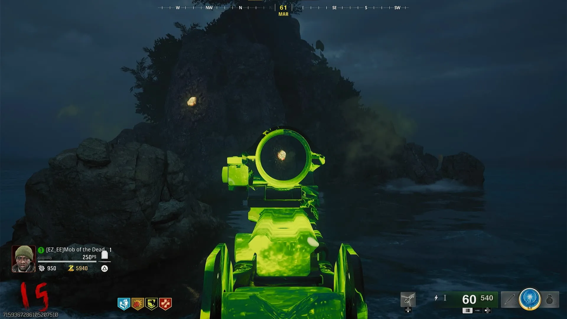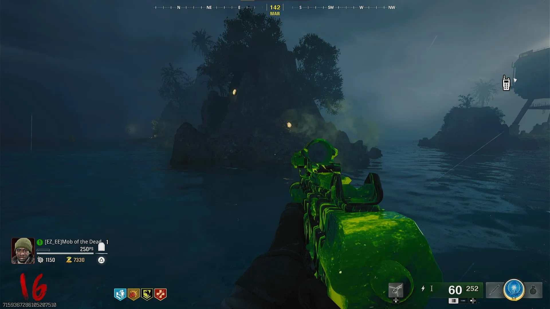 Móntate en uno de los botes y maneja alrededor del mapa. Si te fijas bien, una de las islas tiene esporas que pueden ser destruidas si les disparas. Hazlo y luego pasa de ronda.