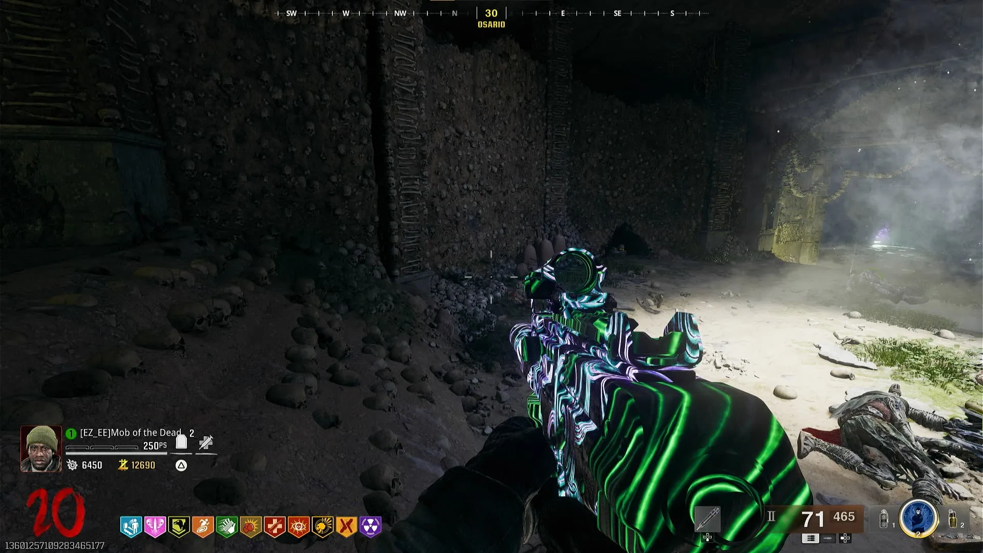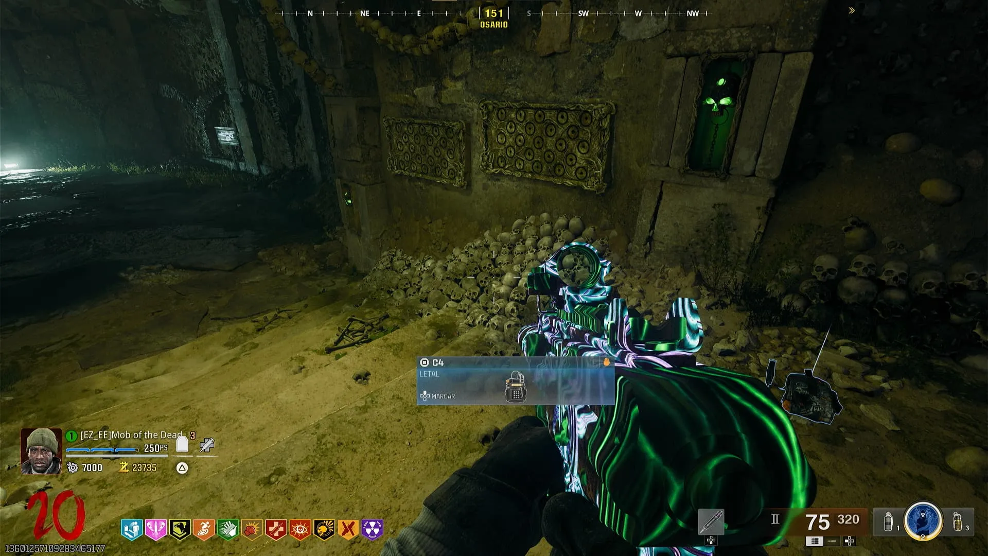 - Hay cuatro cráneos marcados con una X repartido por todo el Osario, debes dispararles rápidamente con el arma que tiene composición cerebral.