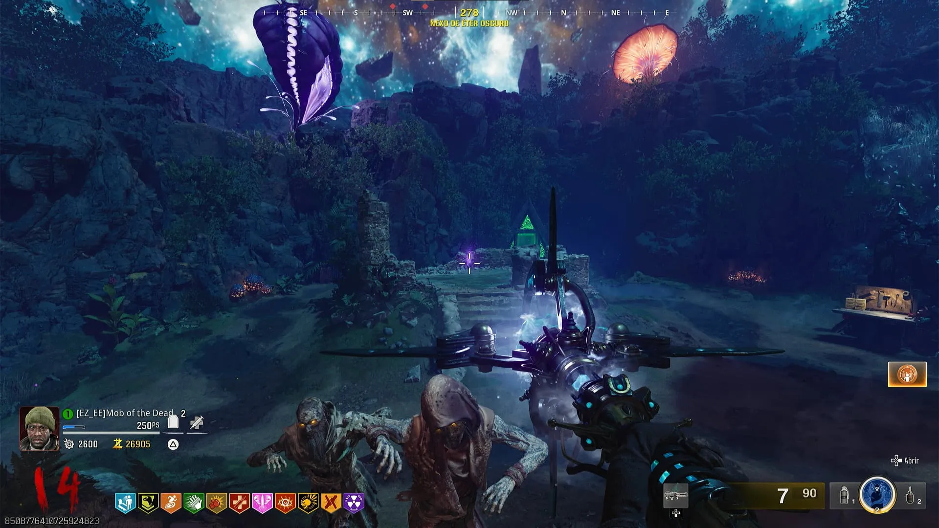 - Veras que a los lados del portal verde dentro del Nexo del Éter Oscuro habrá dos cascadas que debes dispararle usando el modificador/bastón y estos se congelarán