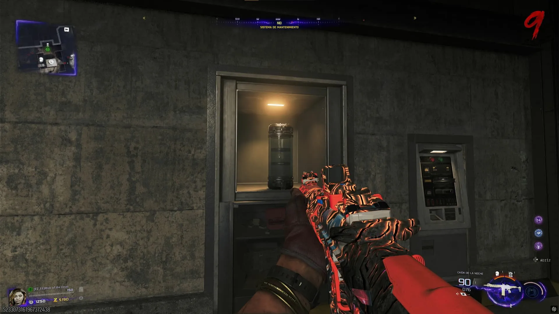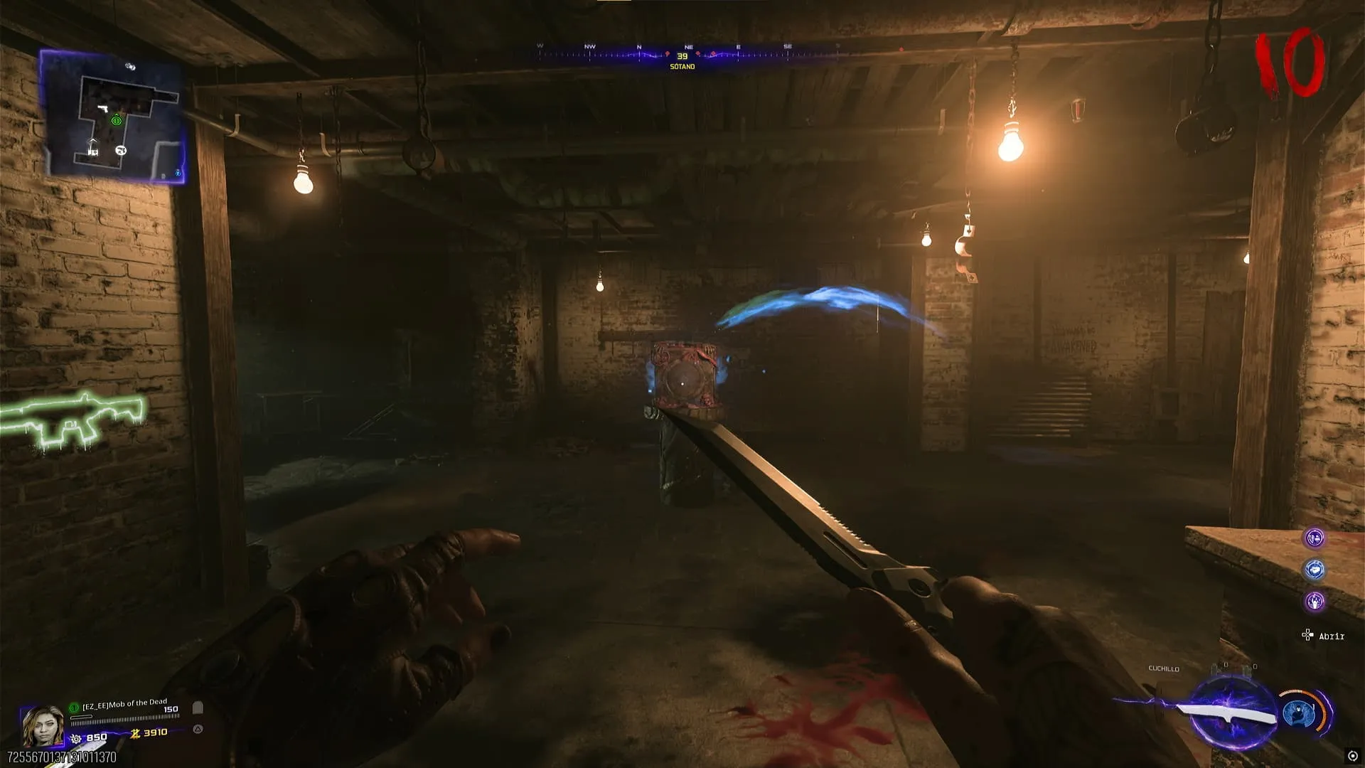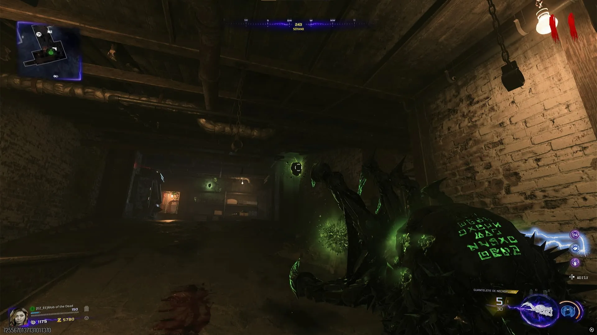 - Al agarrar el guantelete, este activará una pequeña contención en la que debes dispararle a varios orbes verdes que rodearan el sótano, y luego recargar para obtenerlos. Al recolectar todos los orbes, el Guantelete de Necrofluido será completamente usable.