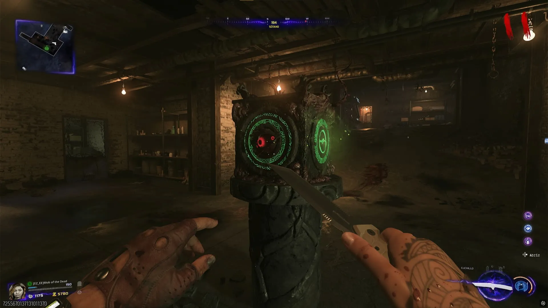 - Debes colocar los símbolos en cada lado del pedestal en Sótano y luego interactuar con el gran ojo rojo para recibir el Guantelete de Necrofluido.