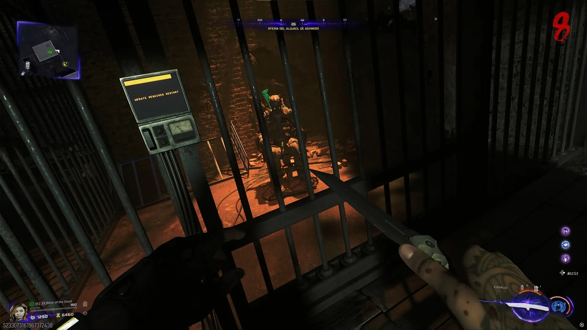 - Lleva el Chip Estabilizador a la Oficina del Alguacil de Ashwood y colócalo en el panel de la celda, luego espera a que el panel diga el mensaje "Update requires restart".
