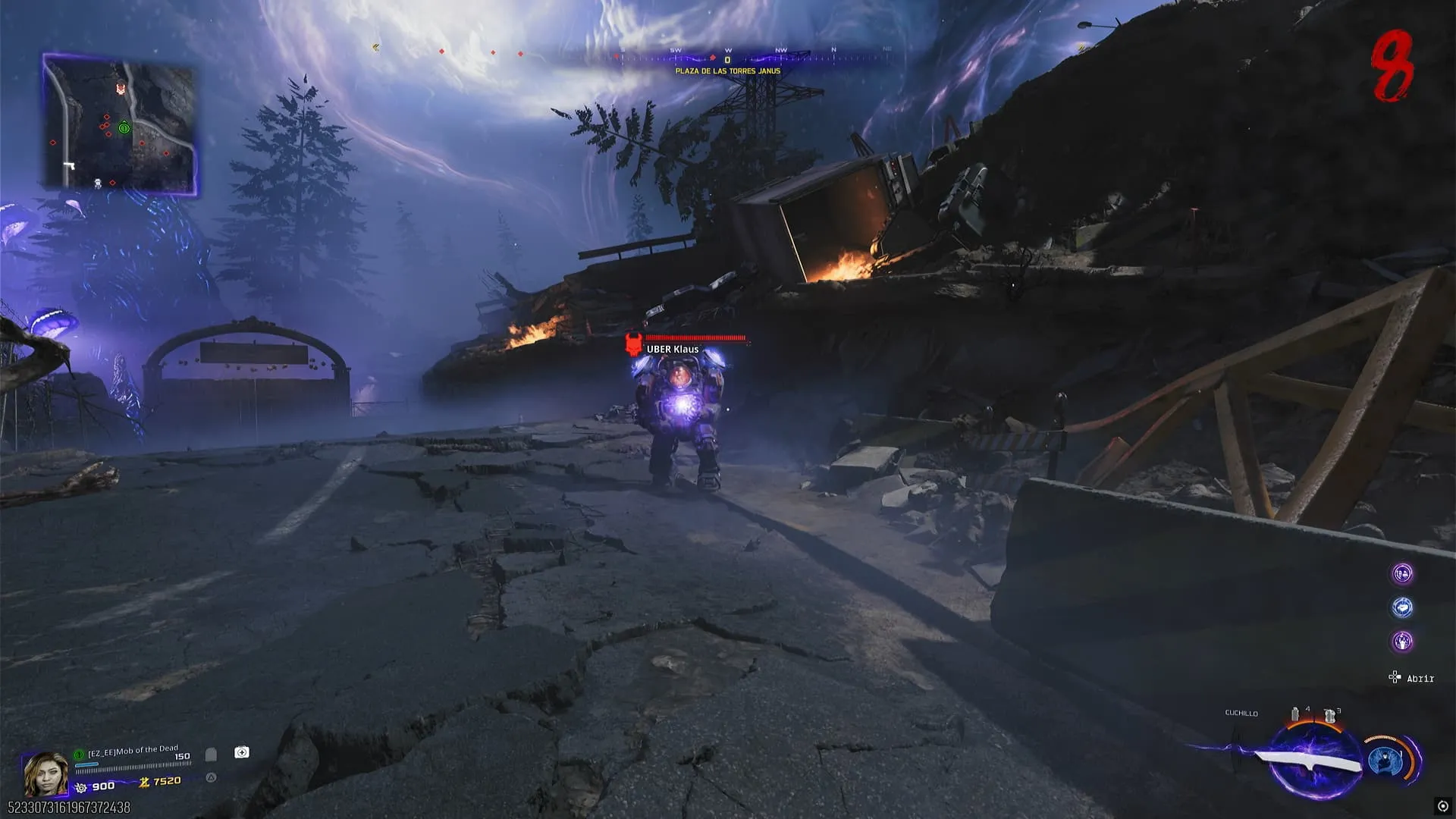 - A partir de la ronda 8, ve a Plaza de las Torres Janus y acércate a los escombros frente a la Warden 308 de pared. Un Uber Klaus saldrá de allí, debes matarlo para que este suelte el Chip Estabilizador.