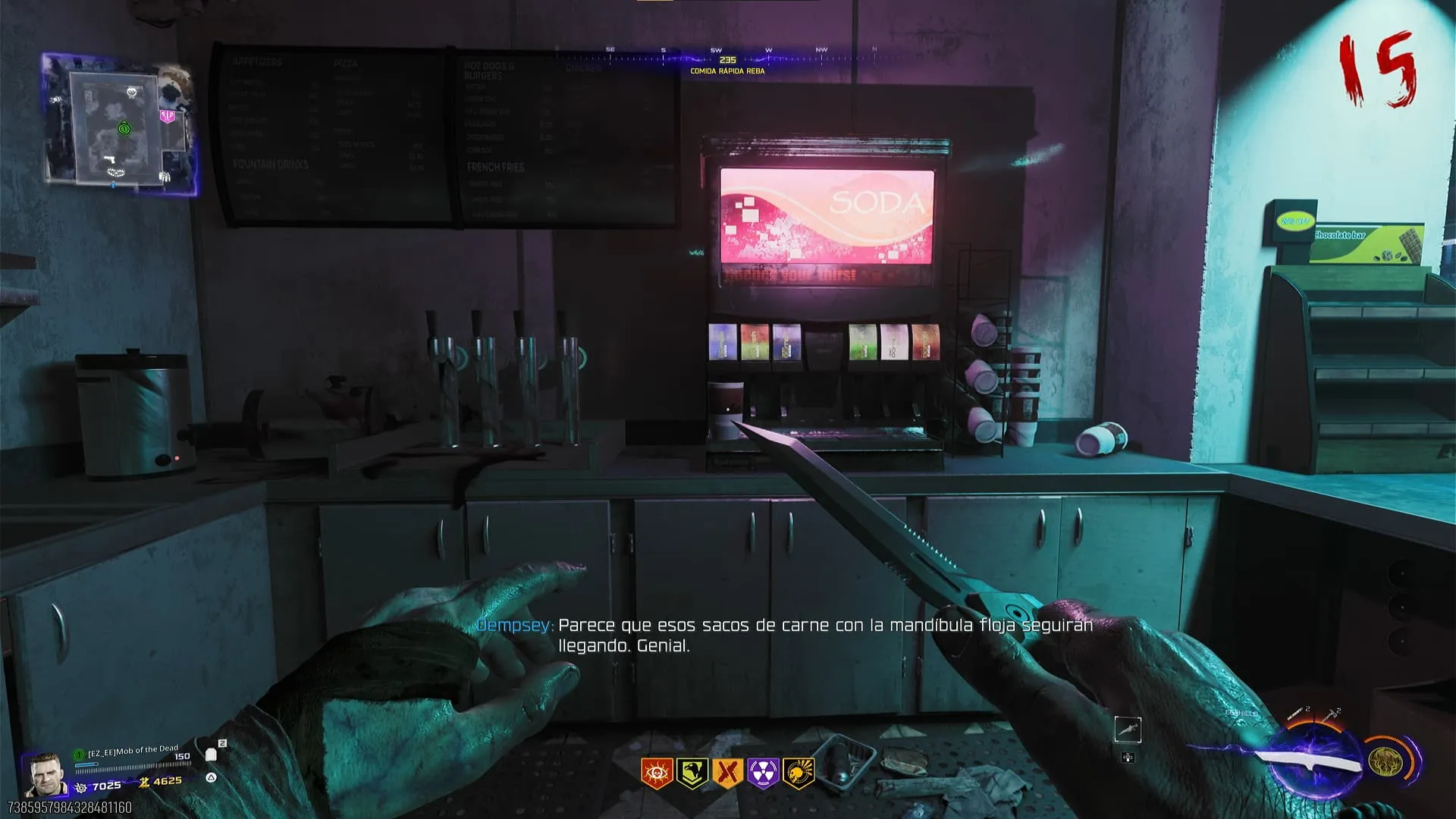 Al tener los tres objetos, ve a Comida Rápida Reba en Exit 115 e interactúa con el vaso de soda para combinar estos objetos. Interactúa nuevamente con el vaso para tomártelo y conseguir la bebida gratis.