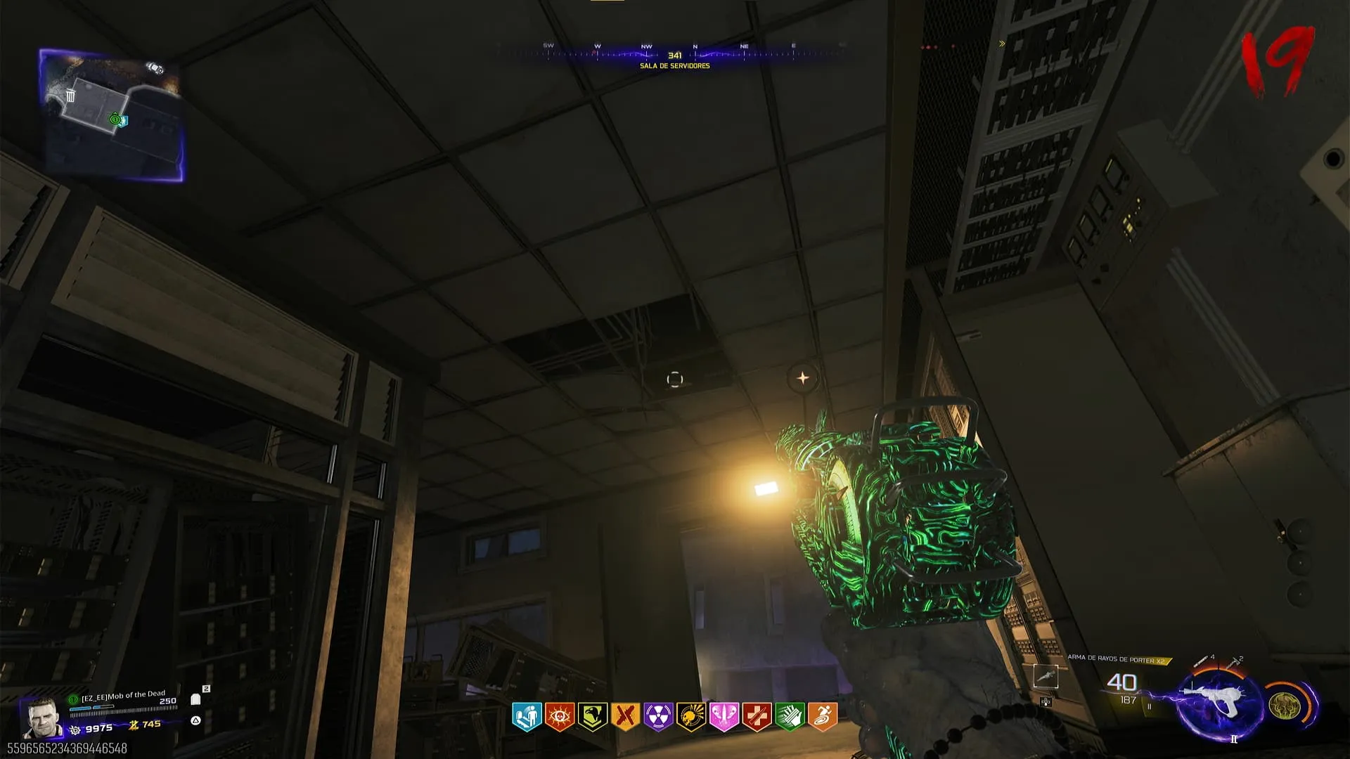 Munición Maxima se consigue dentro de Sala de Servidores mirando al techo desde Quick Revive en la Sala Inicial.