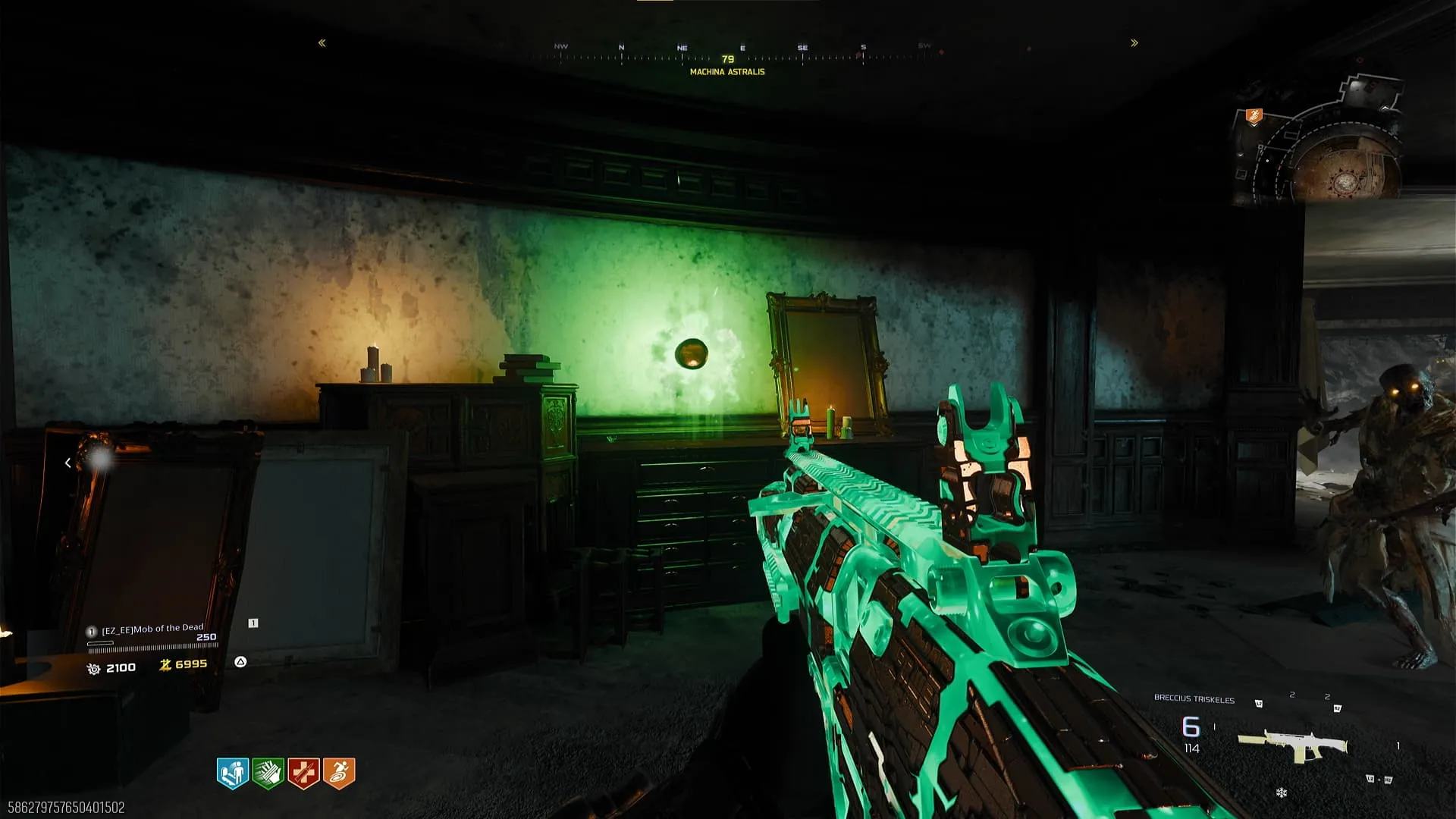 - Los ojos de los cráneos se prenderán y luego comenzará un minijuego de Simon Dice. Dispárales a los cráneos en el orden correcto y al terminar se te regalará un Power Up de Ventaja Aleatoria.