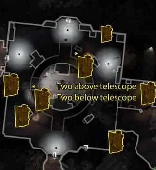 - Interactúa con el telescopio y coloca el punto de mira en el sol para activar la trampa. Coloca a O.S.C.A.R debajo de la trampa y mantenlo allí hasta que se muera (Si lo haces en una ronda por encima de 10 y tienes problemas para matarlo, trata de quitarle el escudo, pero normalmente no sería necesario hacerlo).