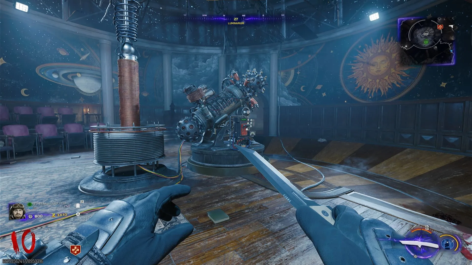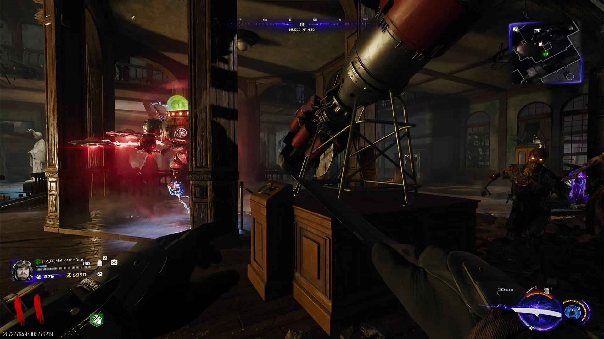 - Al hacerlo todo correctamente, podrás interactuar con el telescopio del órgano frente a Pack-A-Punch. Para este punto debes tener a un O.S.C.A.R cerca.