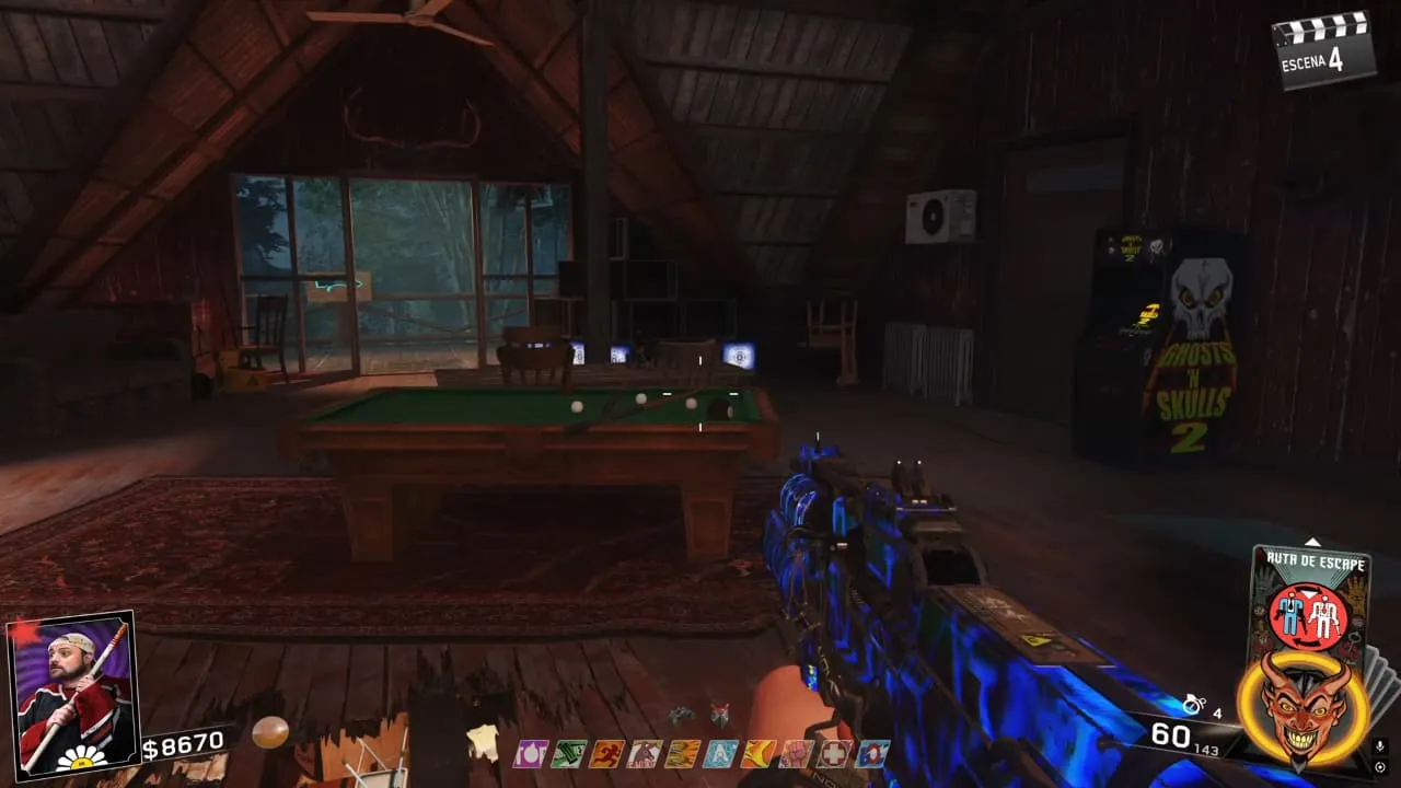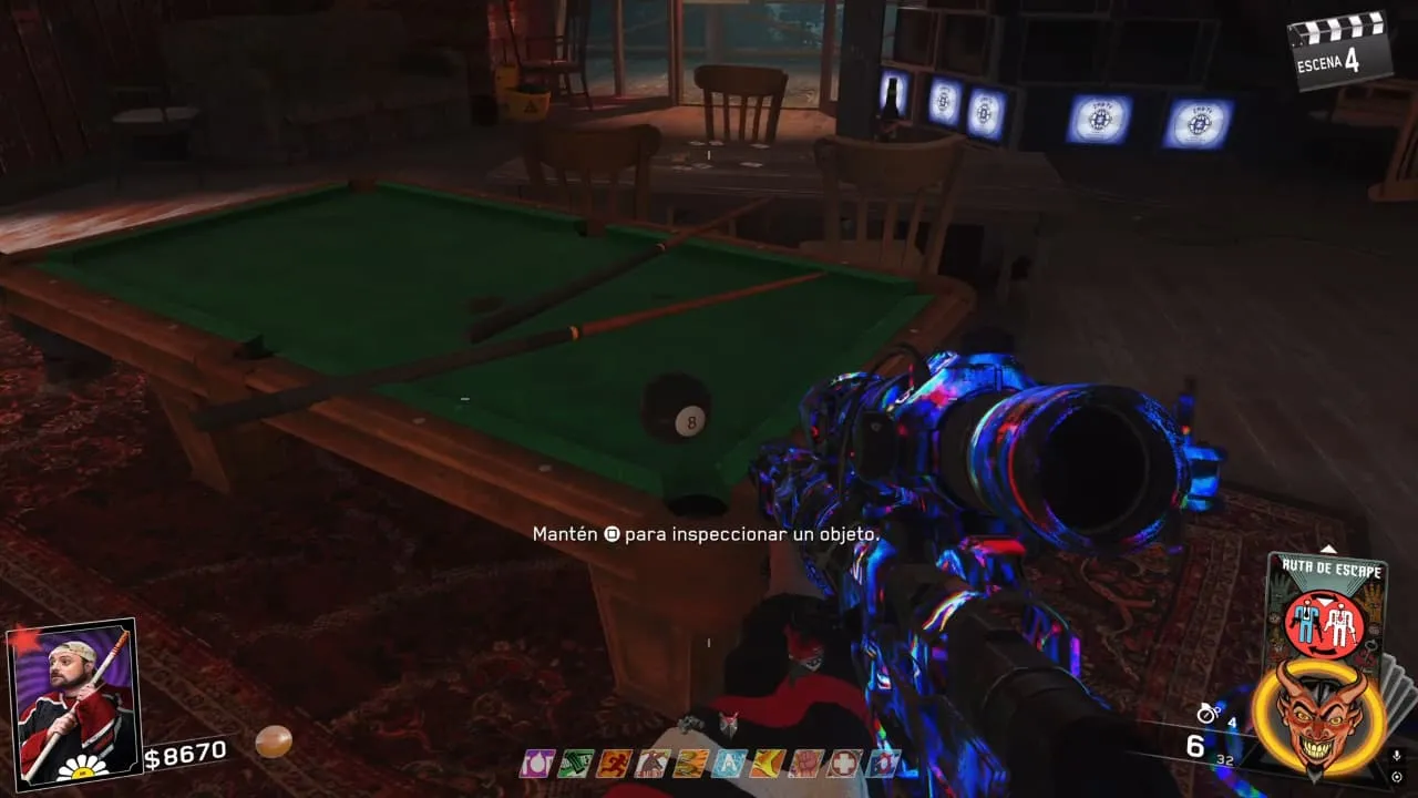 - Ve al piso superior de la Sala Inicial y coloca la bola 8 en la mesa de billar