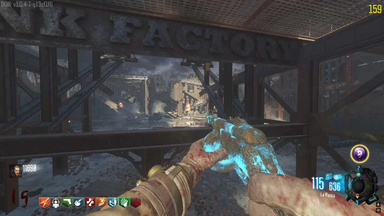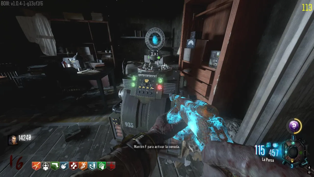 - Todos los jugadores que haya en la partida deben dirigirse a la zona del Pack-A-Punch y deben interactuar al mismo tiempo con la terminal que queda el piso superior.