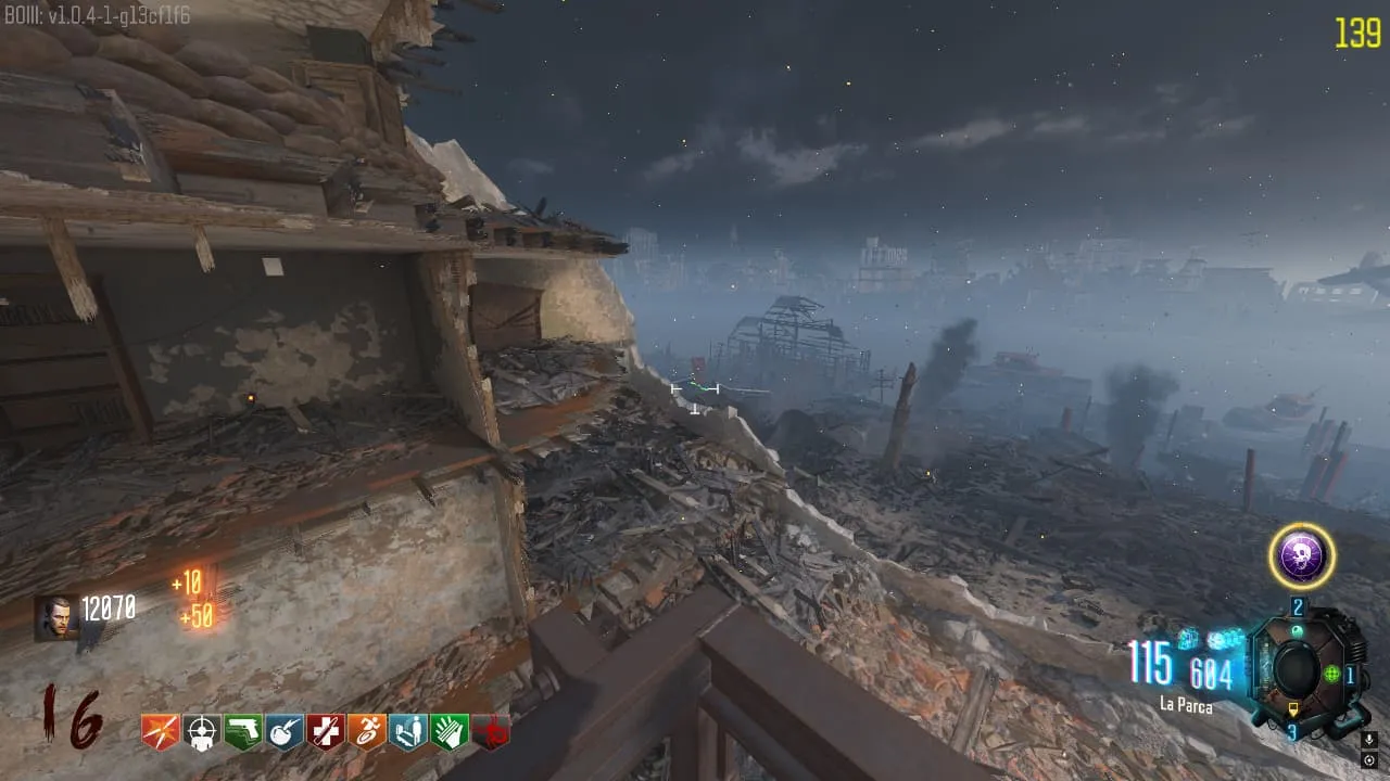 El ultimo se consigue desde una pequeña esquina que te puedes asomar justo al lado de Quick Revive en la Sala Inicial. La bandera se consigue apuntando detrás de una fuente rota de agua.