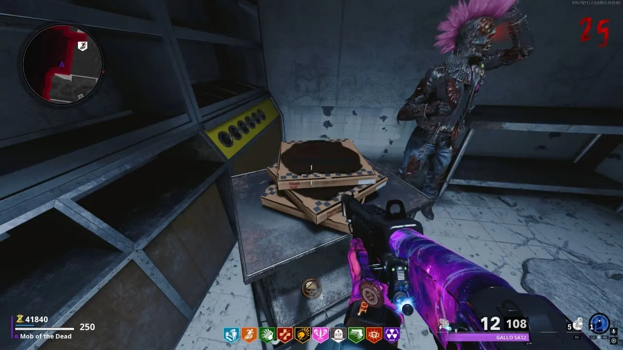 Recoge una de las pizzas al lado del Zombies y comenzaras un minijuego en el que debes entregar la pizza en diferentes lugares en todo el mapa antes de que se te acabe el tiempo.