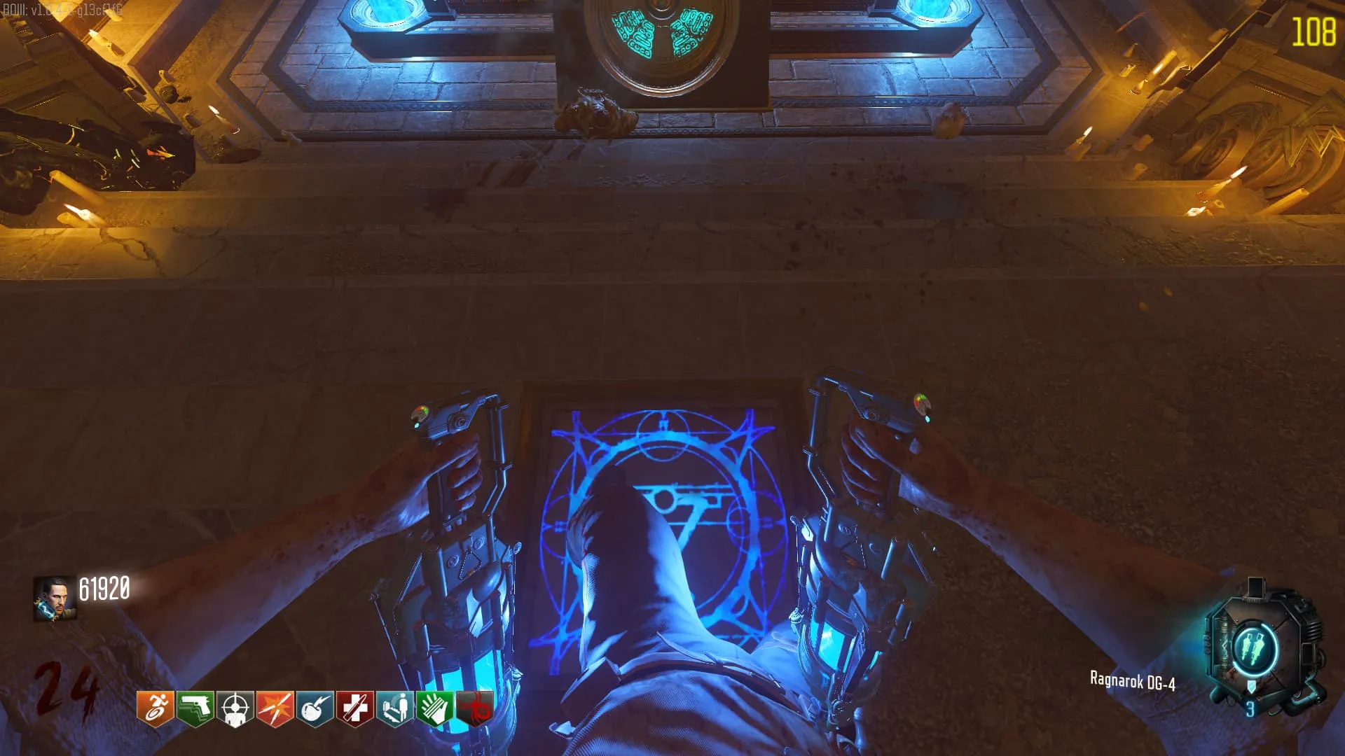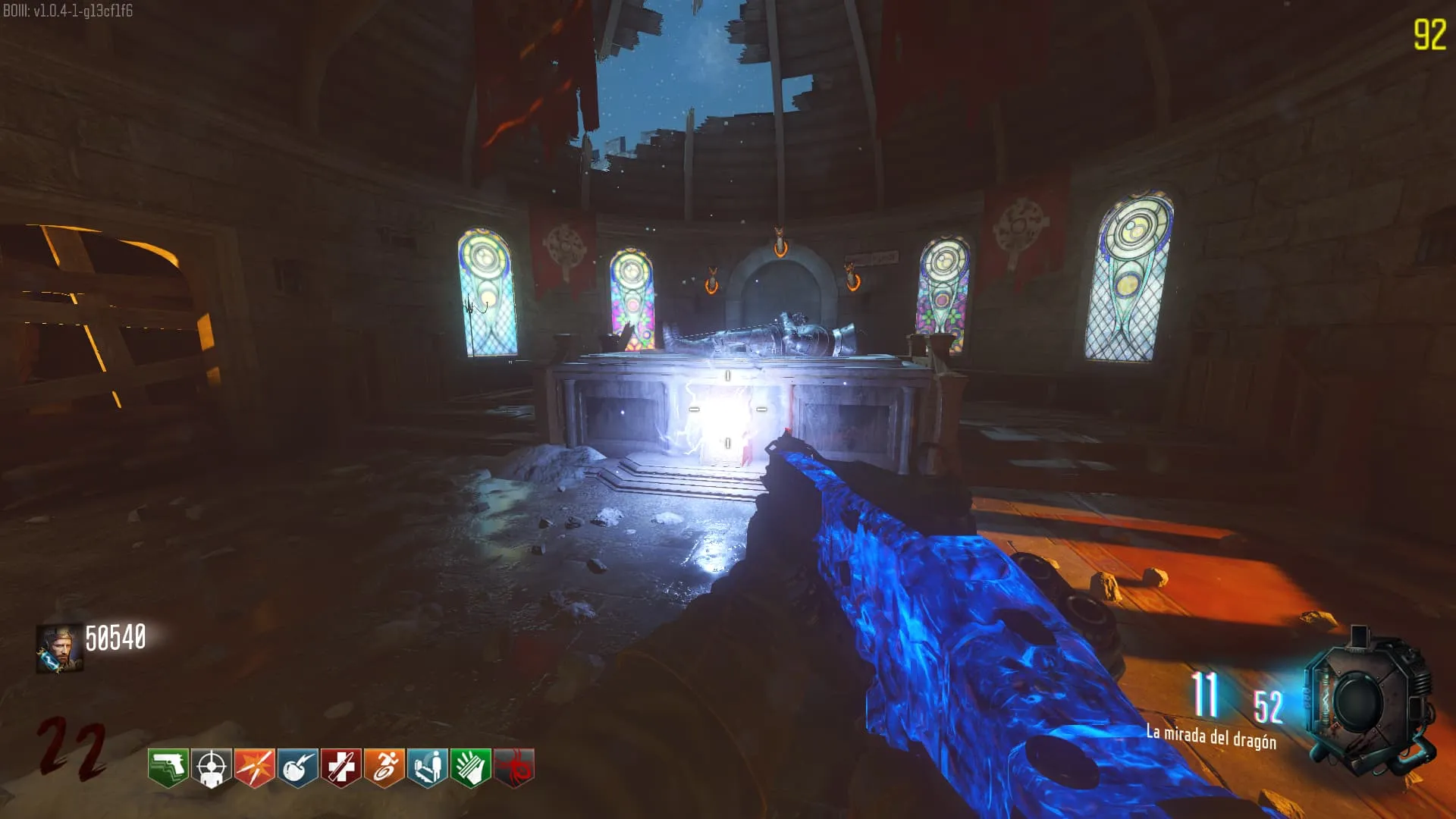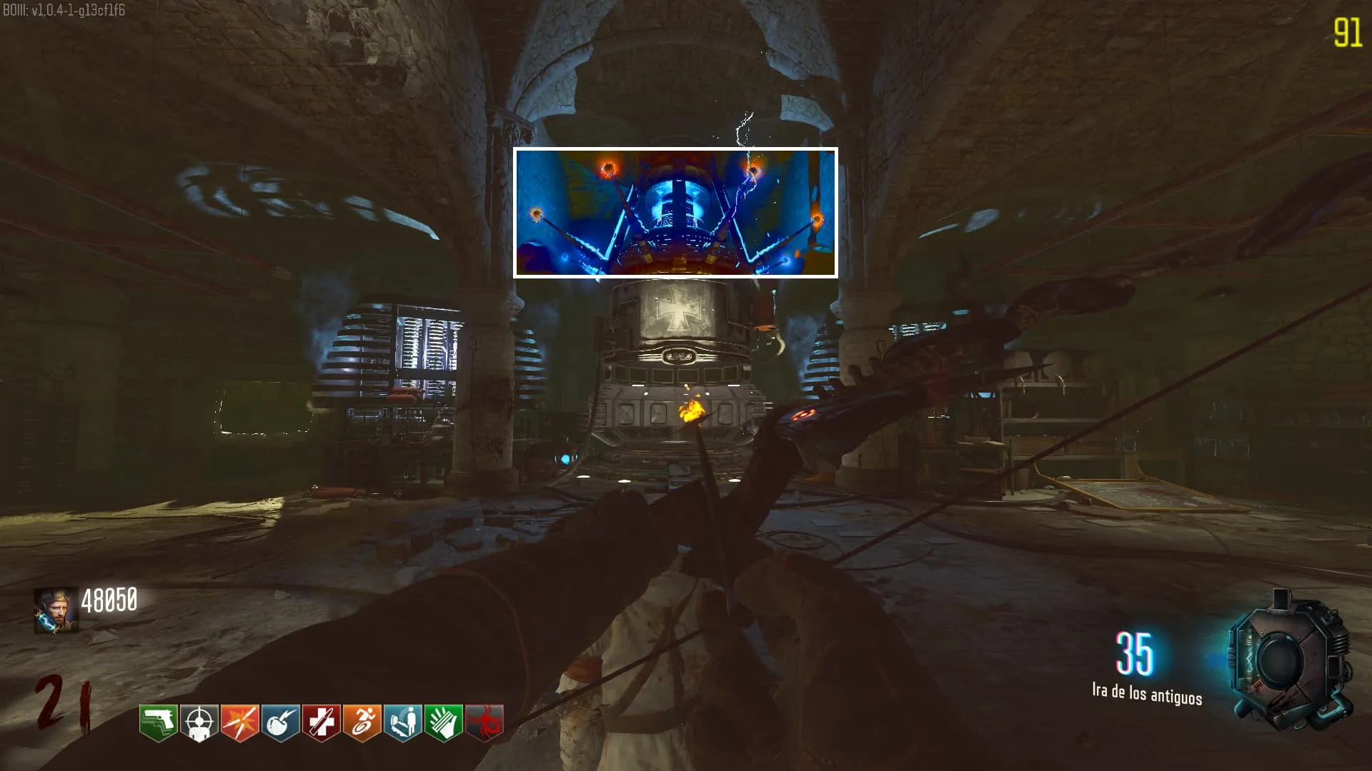 - Dirígete a la iglesia y baja por las escaleras, coloca el dispositivo Vril en la sala de la «Ira de los Antiguos».