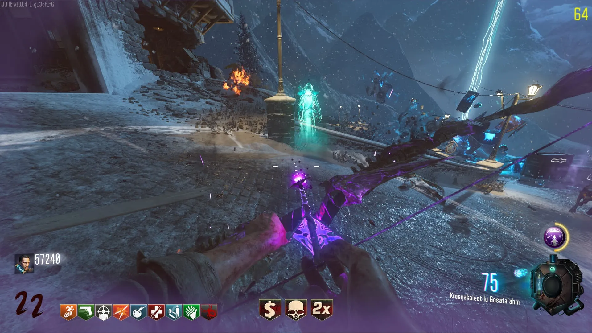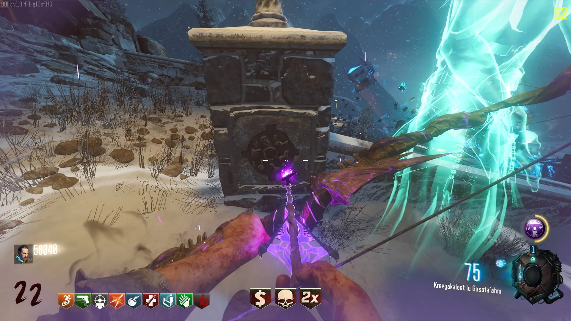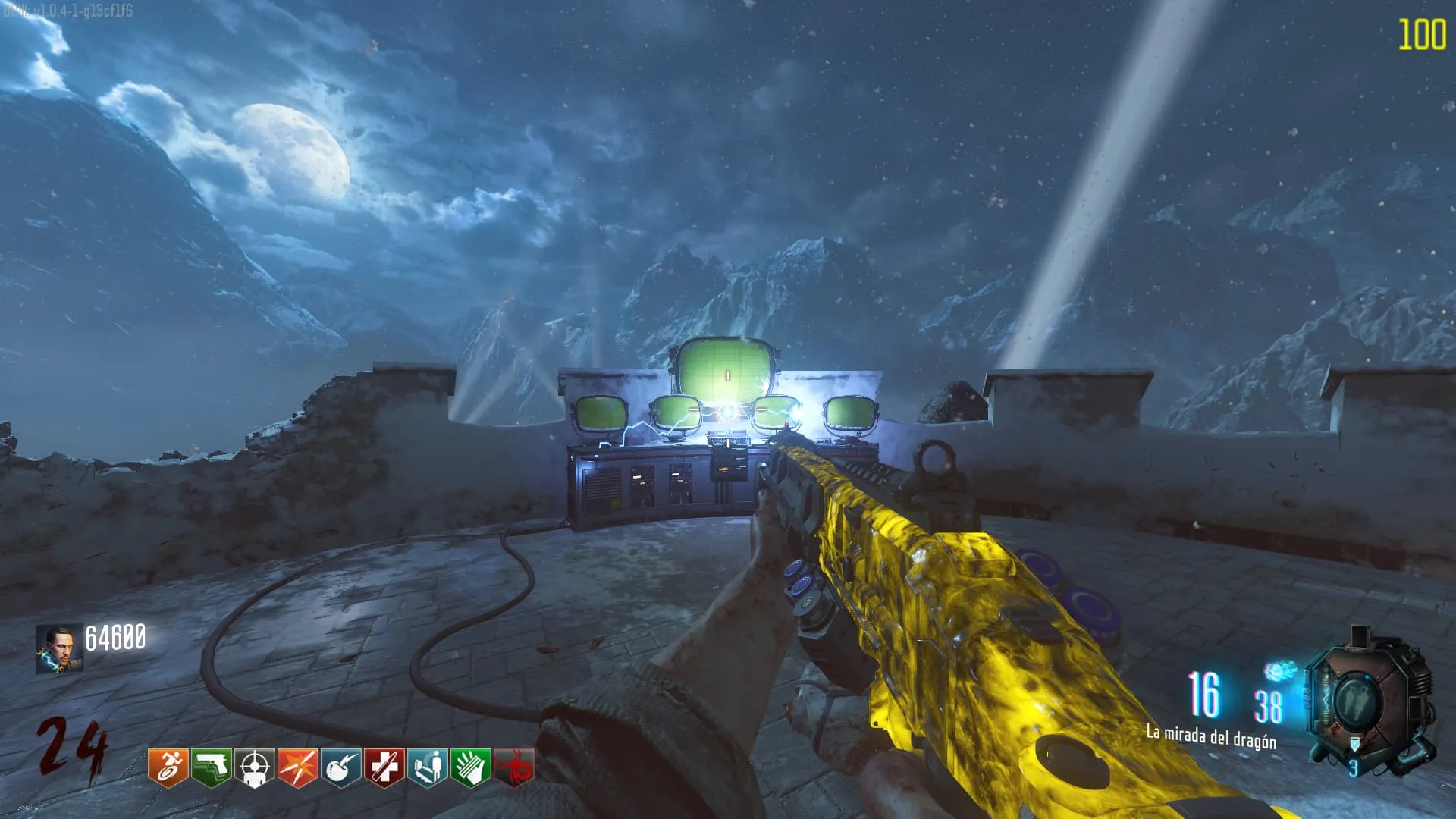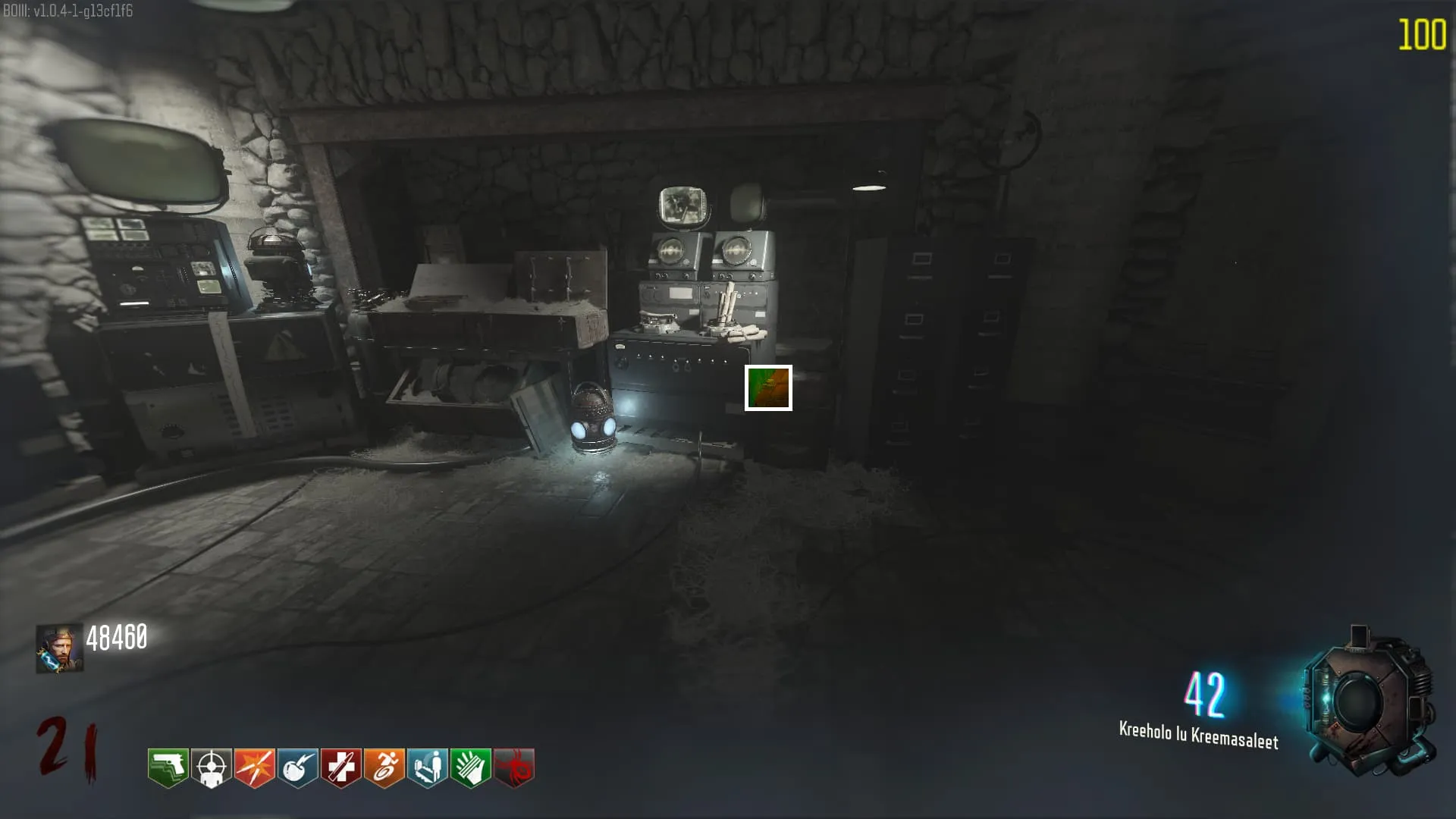 - El Keeper tendrá varias paradas alrededor del mapa, cuando se pare, dejará una zona marcada frente a él. Debes pararte en esa zona y empezar a matar Zombies con uno de los Arcos Mejorados. Al entrar a la zona tendrás un aura en tu pantalla, esa aura te dice que Arco debes usar.