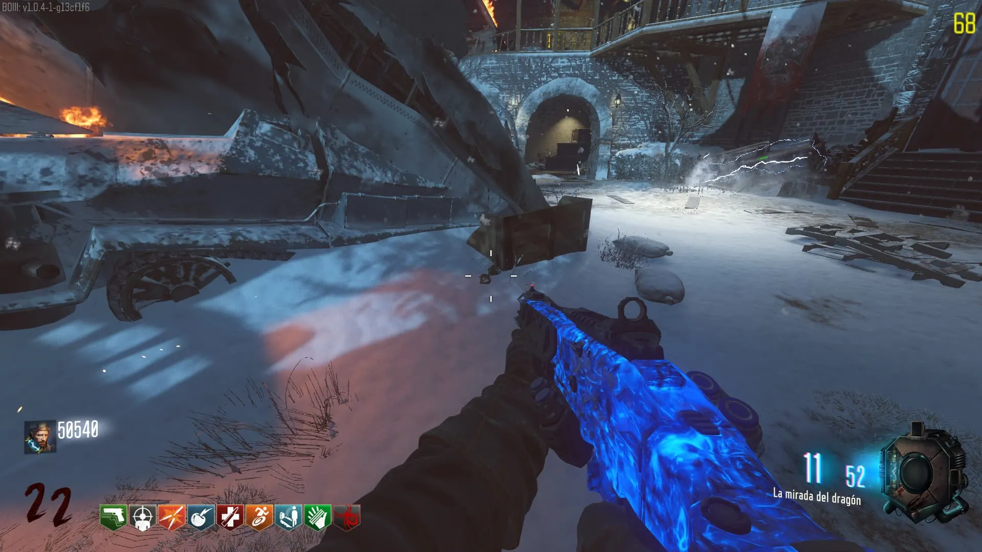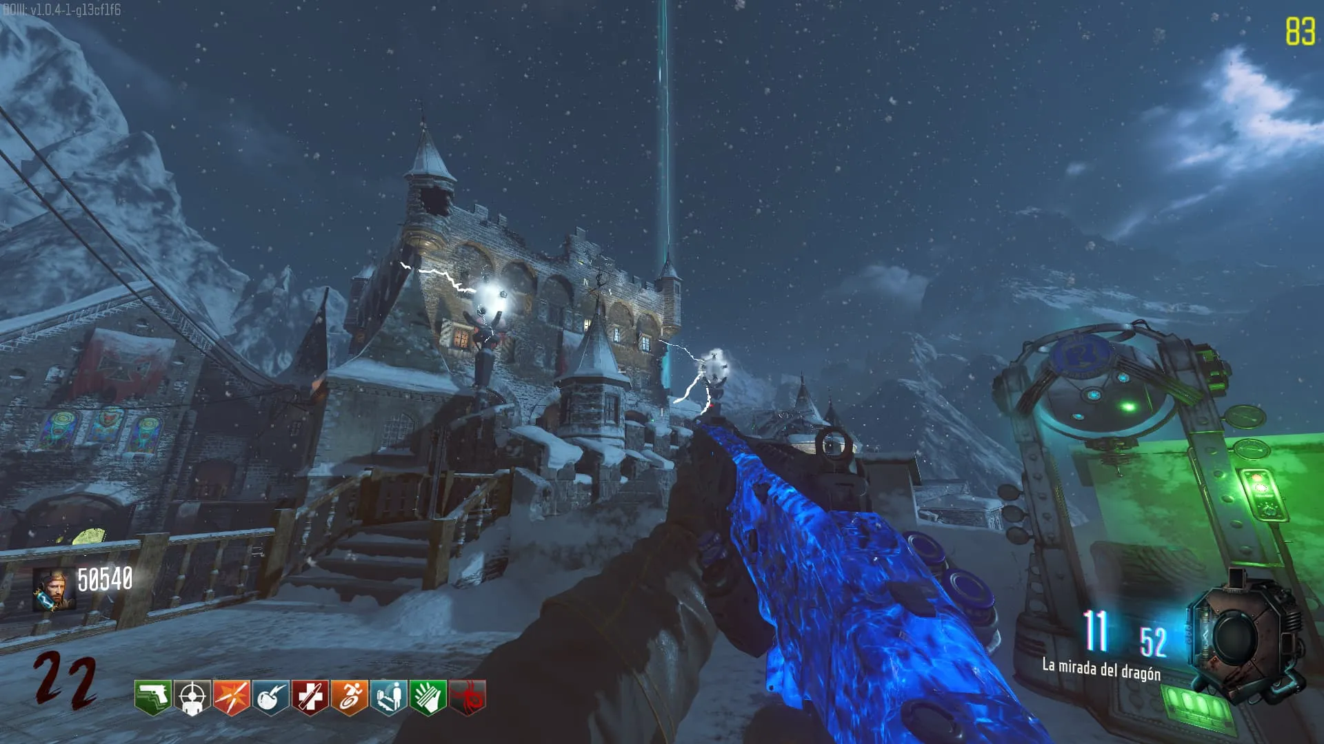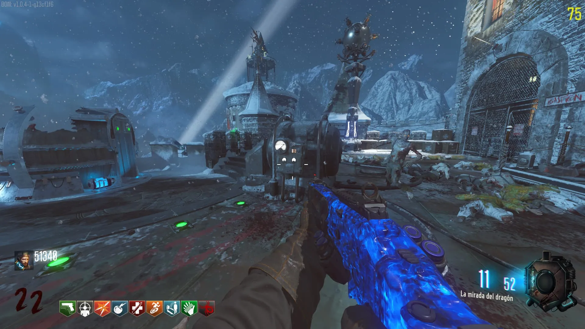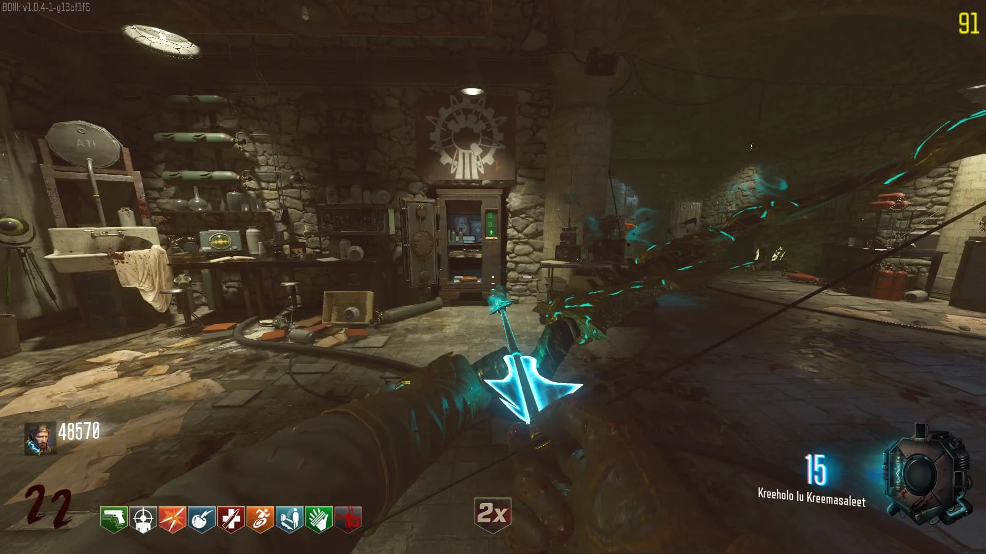 - El Keeper tendrá varias paradas alrededor del mapa, cuando se pare, dejará una zona marcada frente a él. Debes pararte en esa zona y empezar a matar Zombies con uno de los Arcos Mejorados. Al entrar a la zona tendrás un aura en tu pantalla, esa aura te dice que Arco debes usar.
