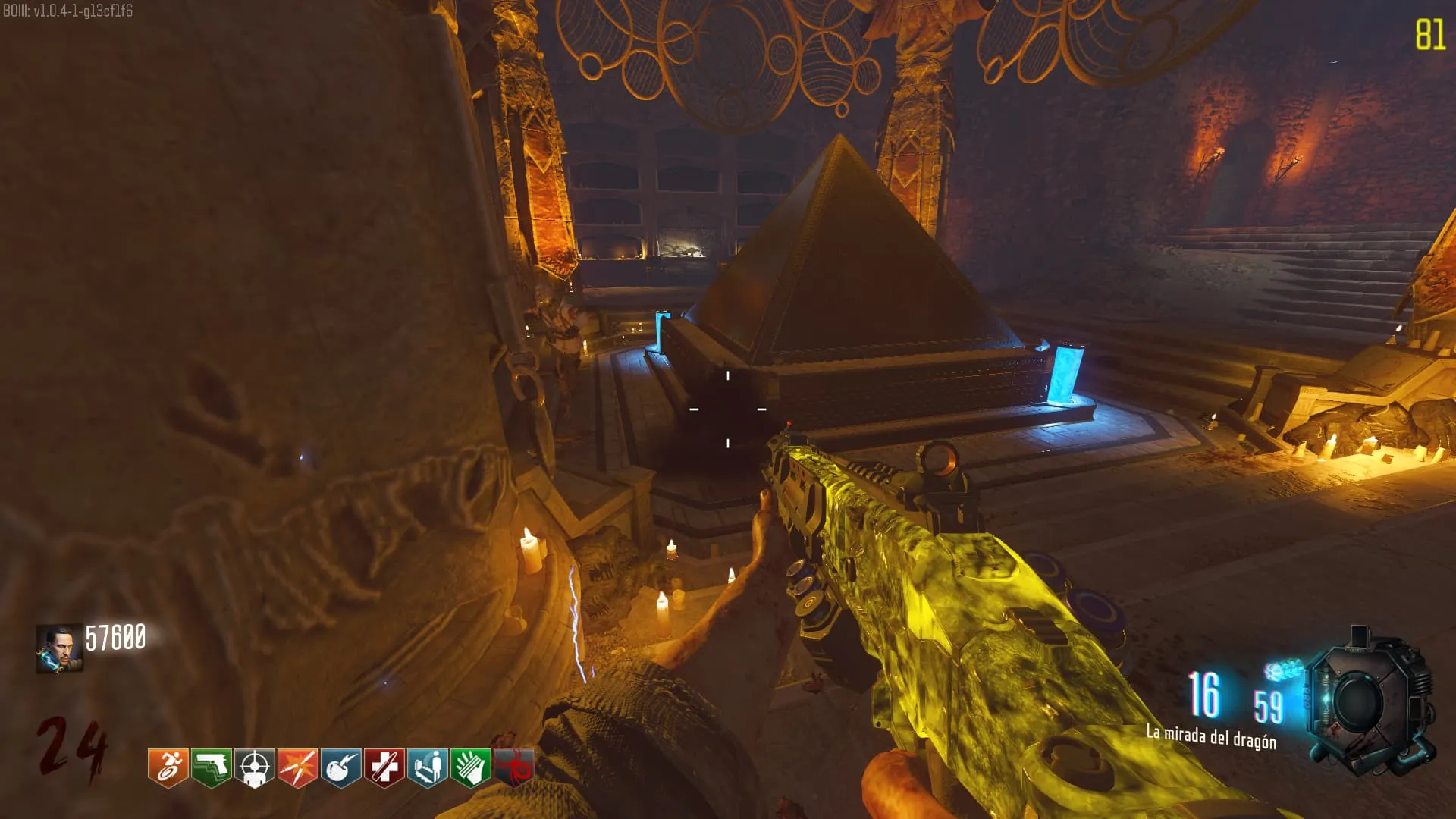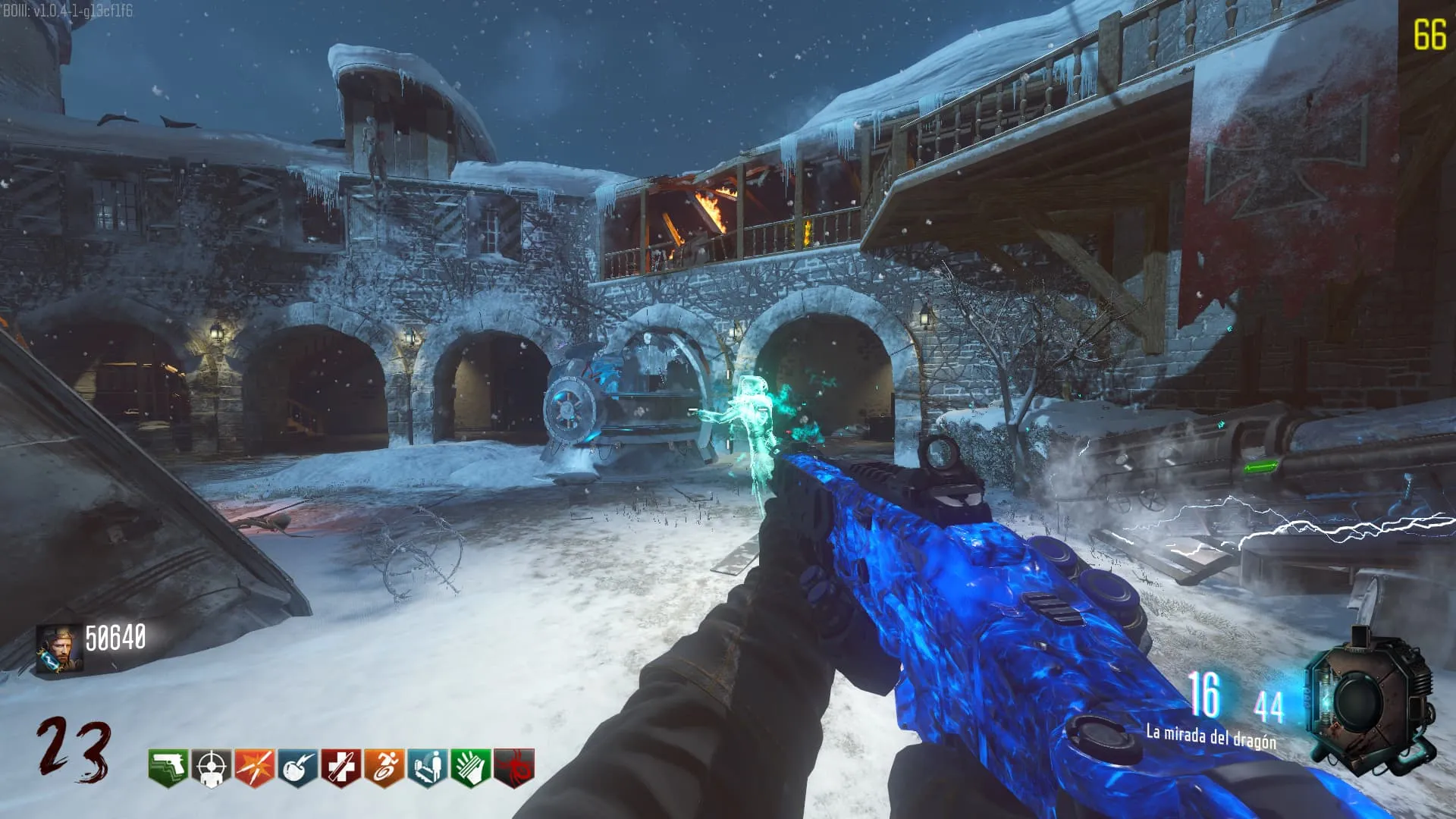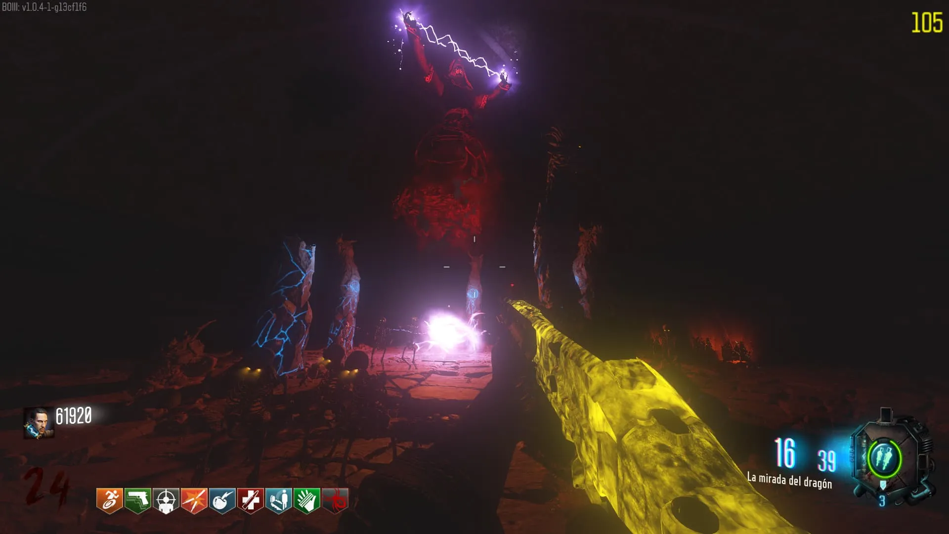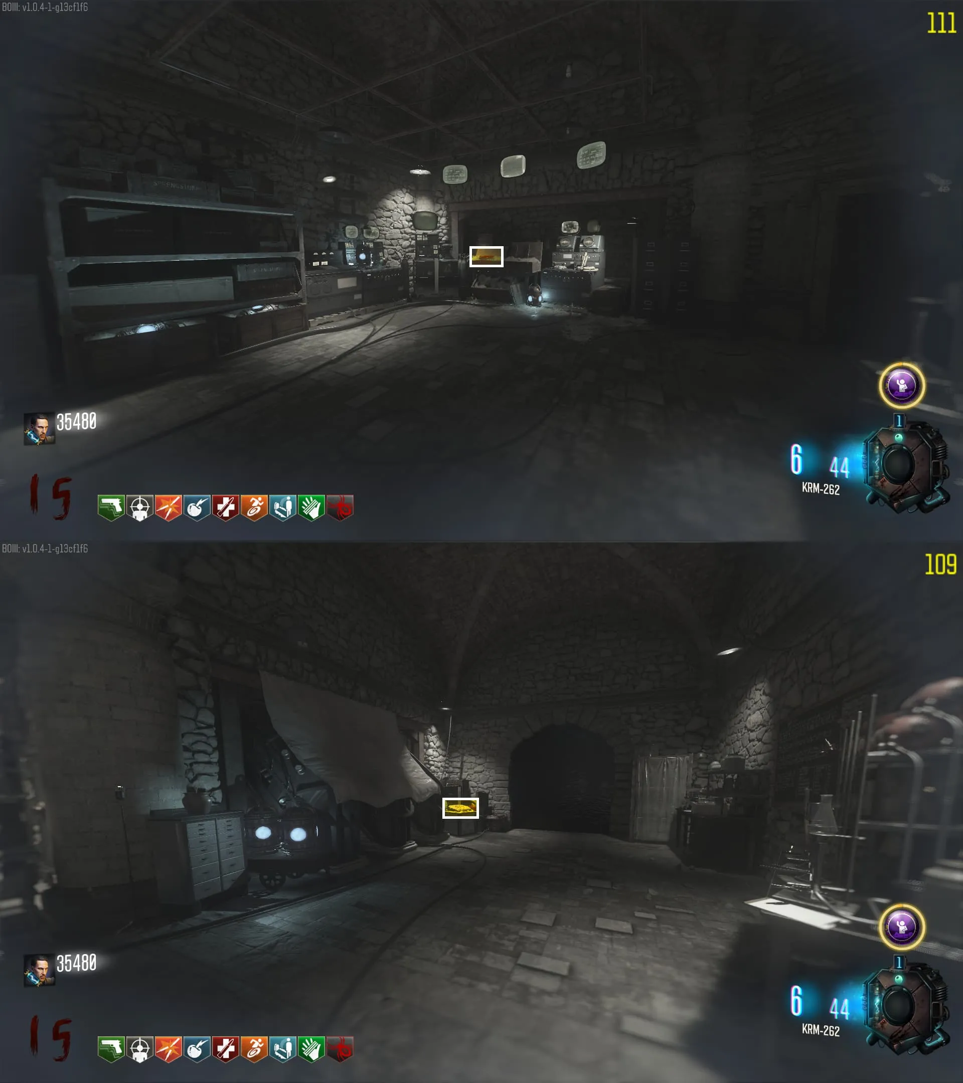 - El Keeper tendrá varias paradas alrededor del mapa, cuando se pare, dejará una zona marcada frente a él. Debes pararte en esa zona y empezar a matar Zombies con uno de los Arcos Mejorados. Al entrar a la zona tendrás un aura en tu pantalla, esa aura te dice que Arco debes usar.