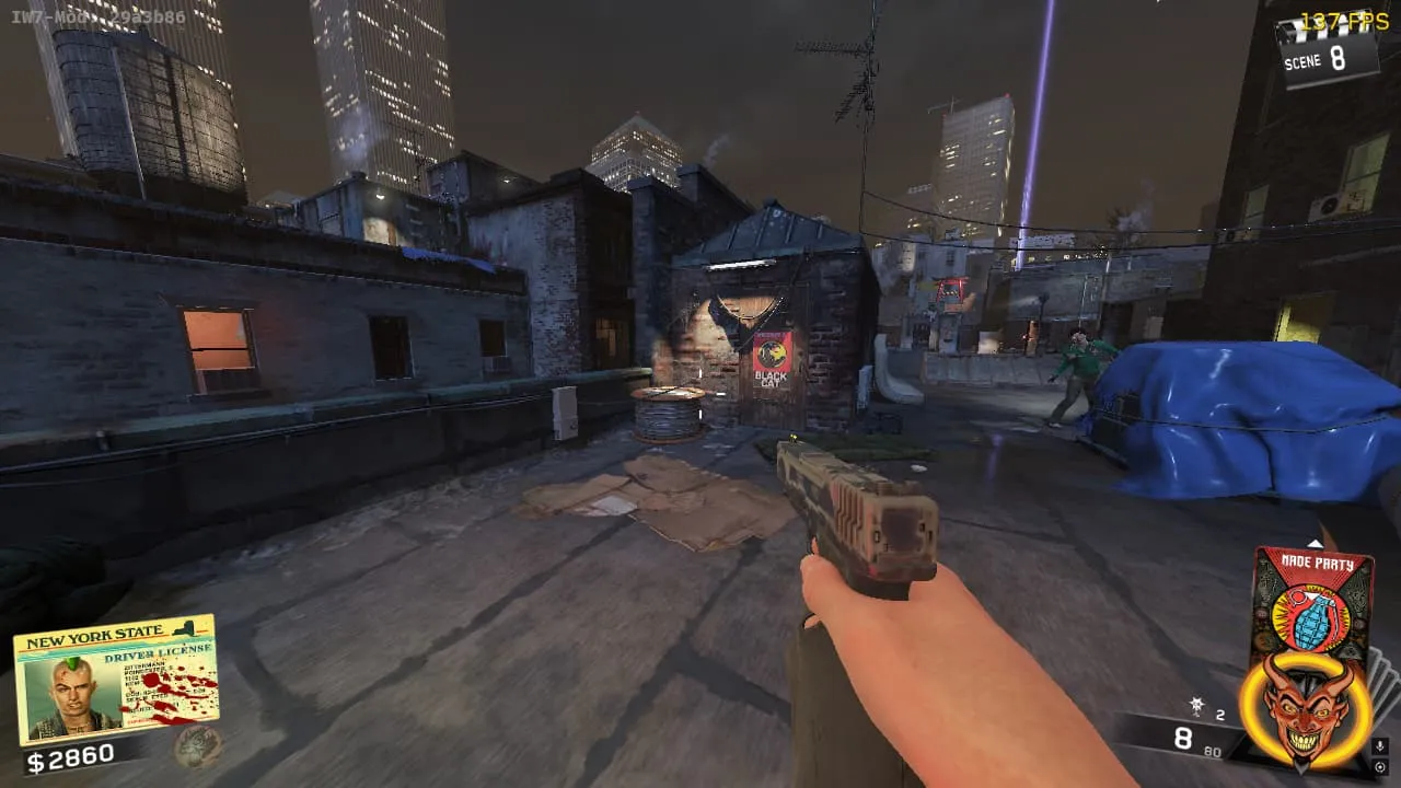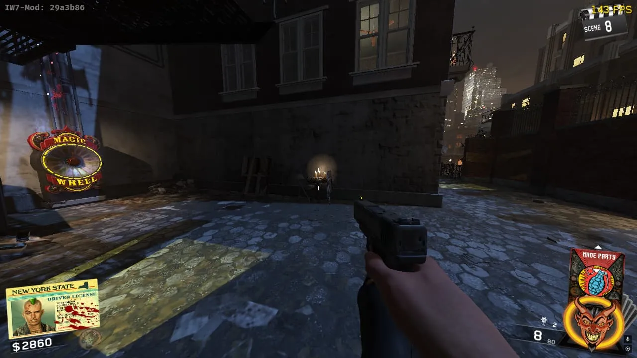 En la parte superior del callejón, a la derecha de la ubicación de la caja en el suelo.