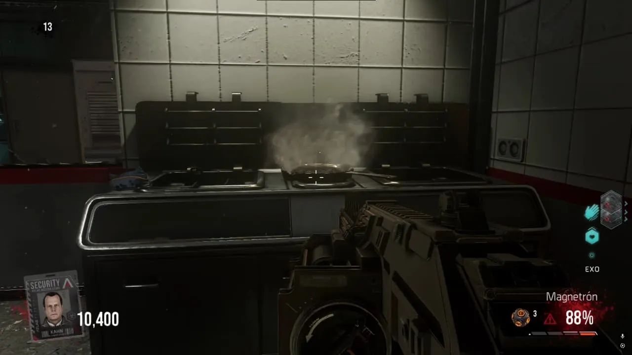 - Recoge un sartén dorado en la Sala Inicial, debes usar el Exo para poder recogerlo.