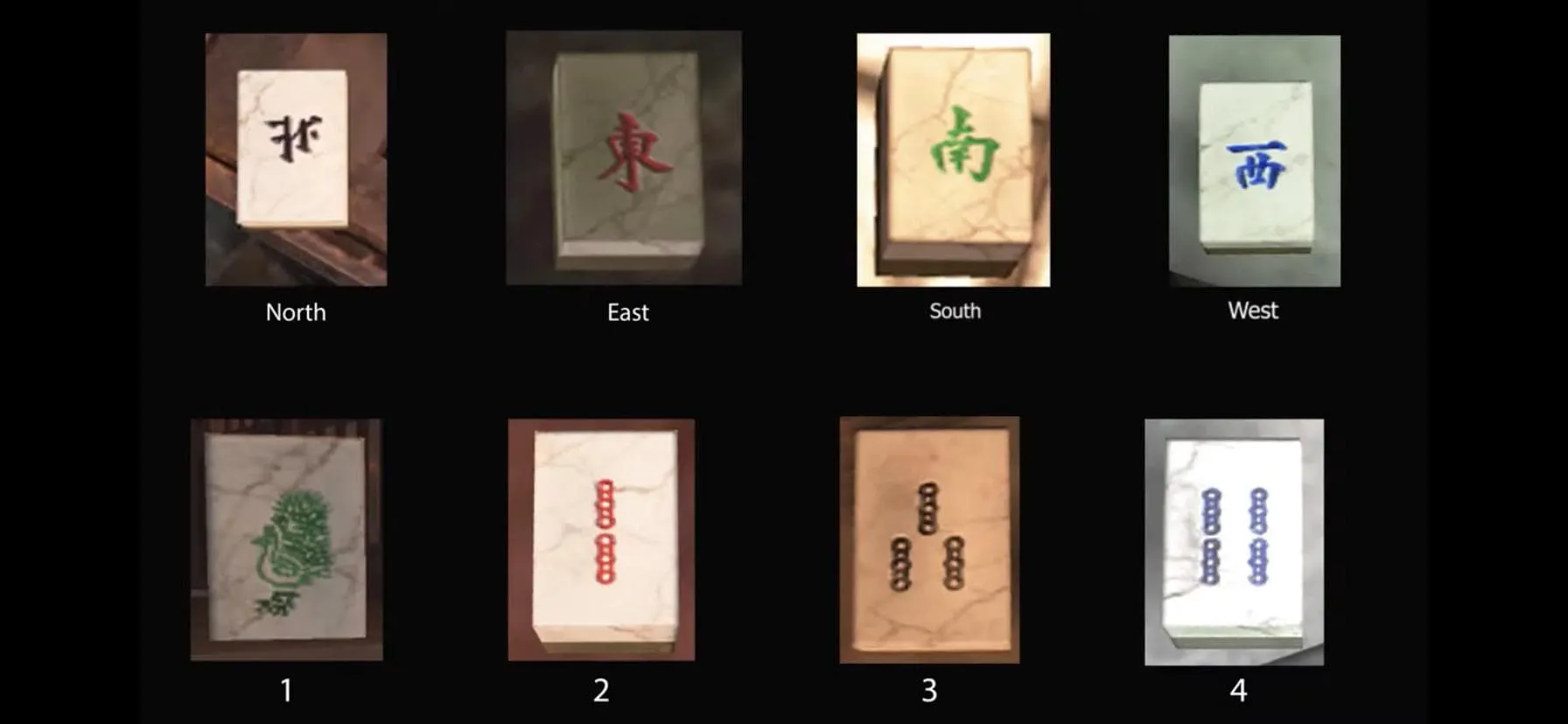 Cada esquina de la Torre de comunicaciones representa un punto cardinal. Debes buscar la correlación entre cada pieza de mahjong, de esta manera puedes saber el orden al que tienes que acuchillar las esquinas de la Torre de comunicaciones.