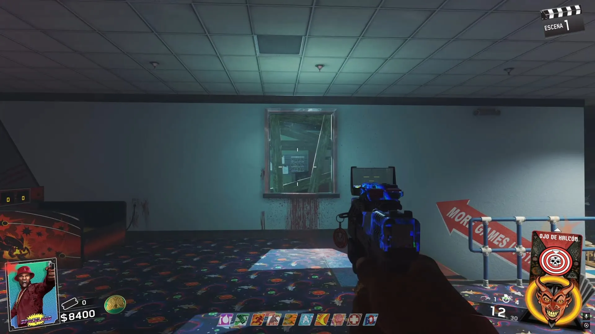 Dentro del Arcade, en el piso superior detrás de una barrera