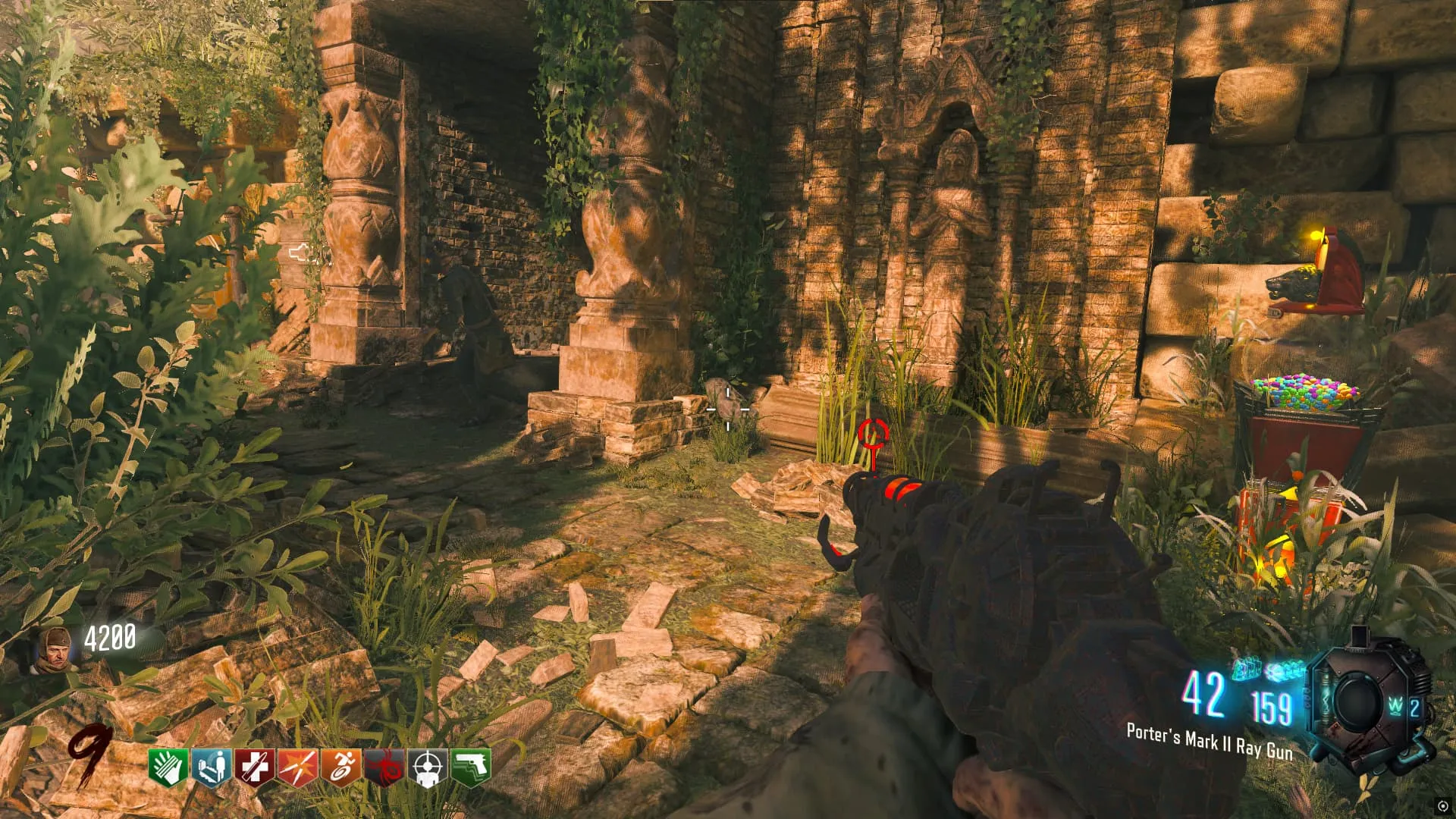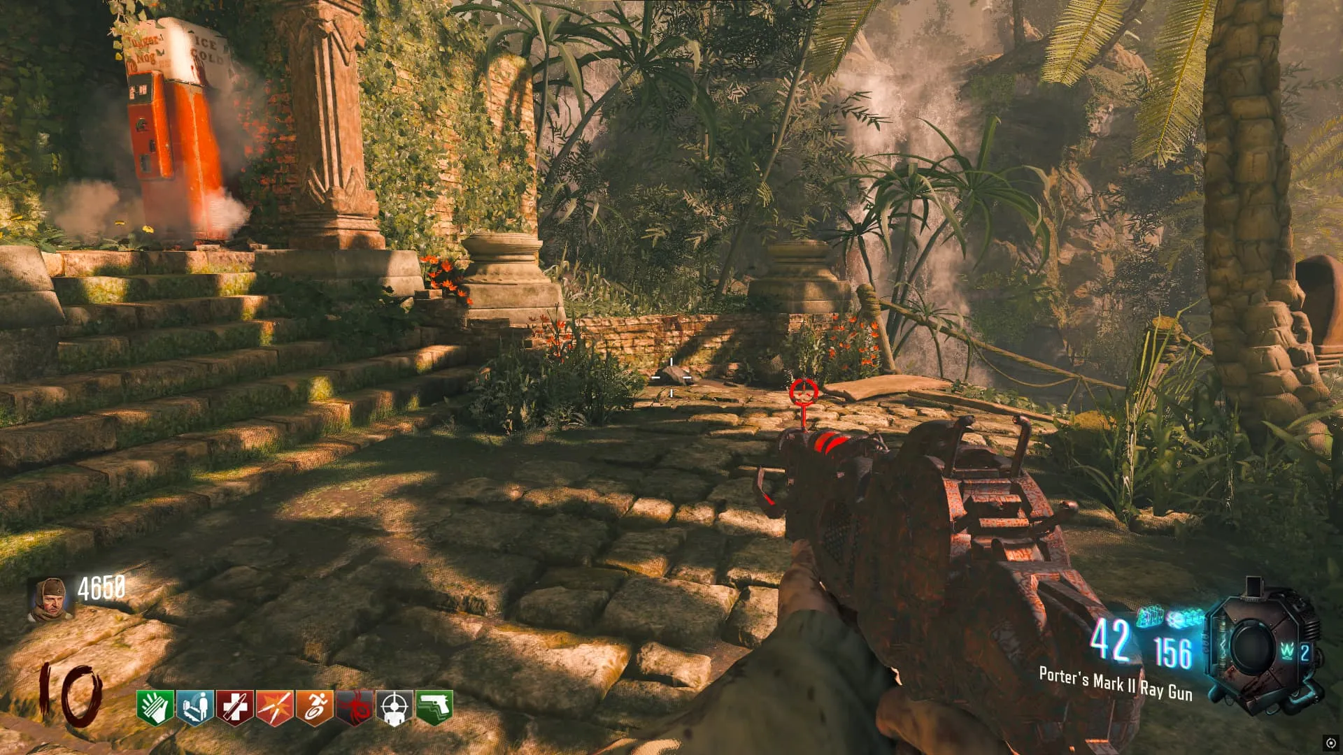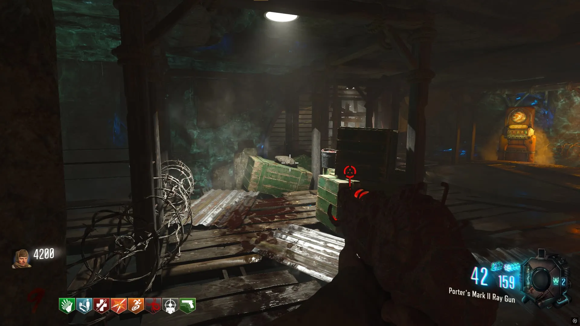 A la derecha de Juggernog/Speed-Cola antes de cruzar el puente colgante.