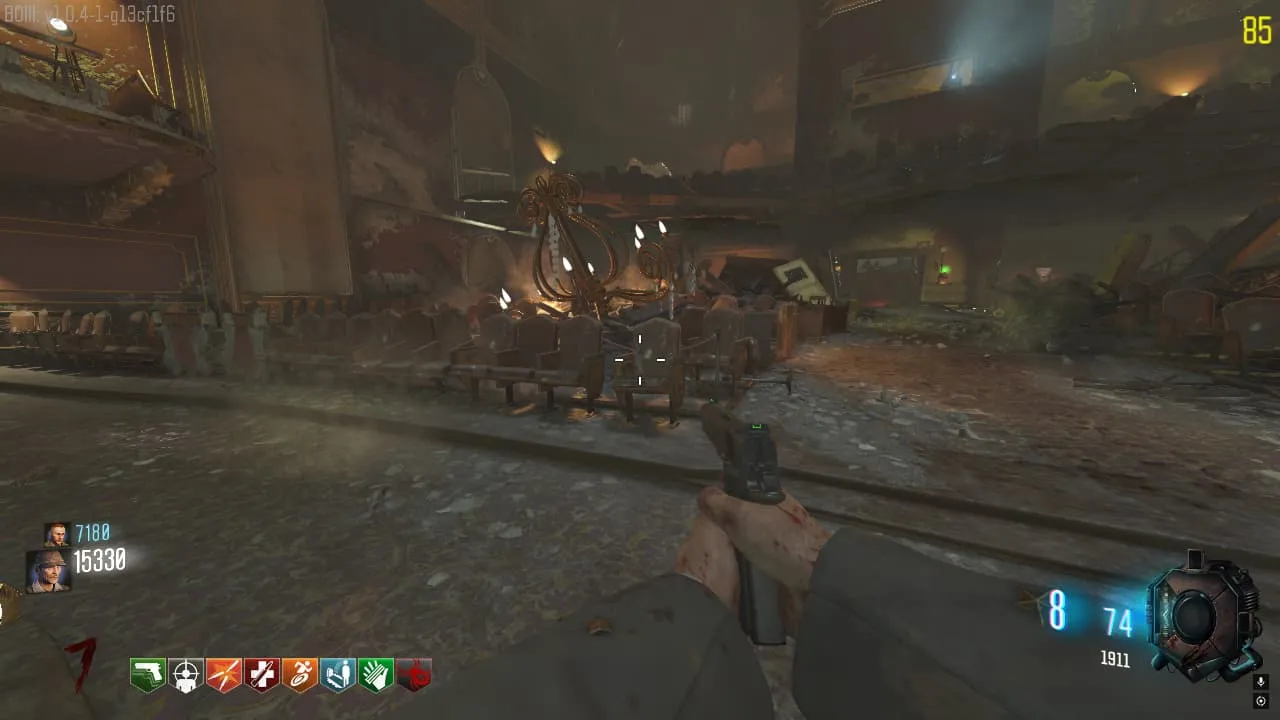 - Dirígete al teatro y frente a unas sillas podrás ver a Samantha en unos escombros. Al interactuar con ella, se activará un juego de escondite y debes buscar 5 Samanthas repartidas por toda la zona.