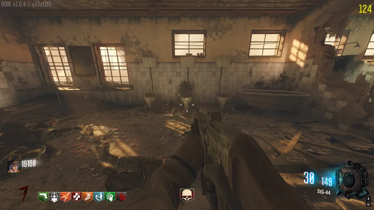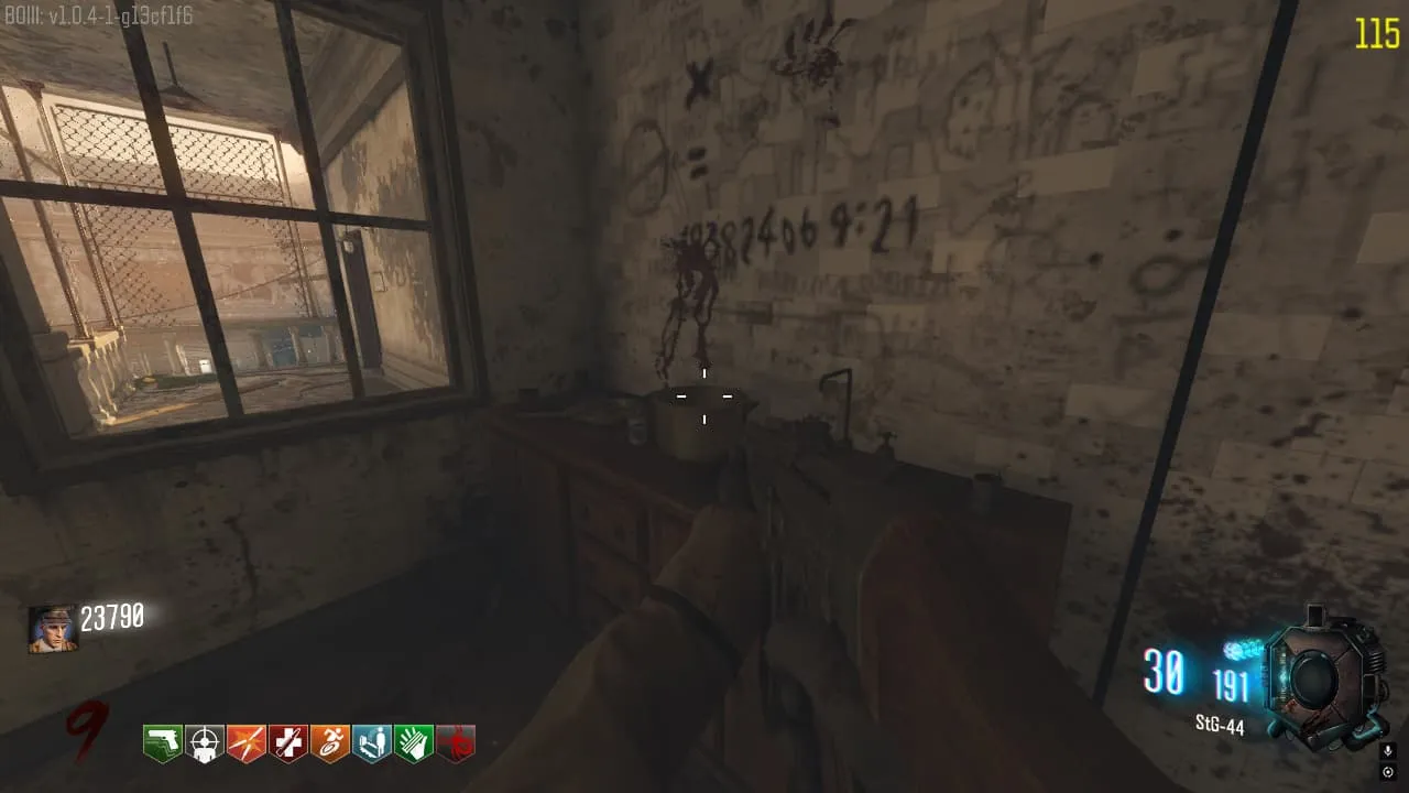 Dirígete a la sala con los retretes frente a la STG-44 de pared y debes interactuar con ellos en el siguiente COMENZANDO el orden desde derecha a izquierda. 9, 3, 5