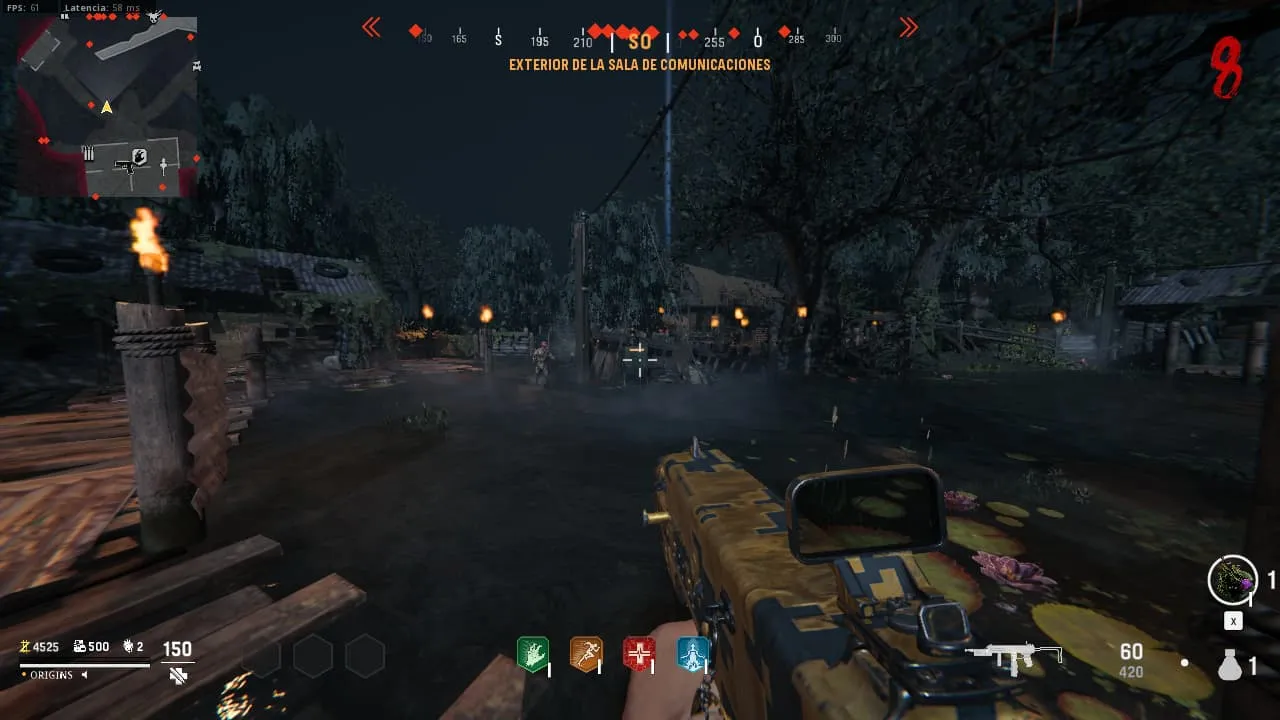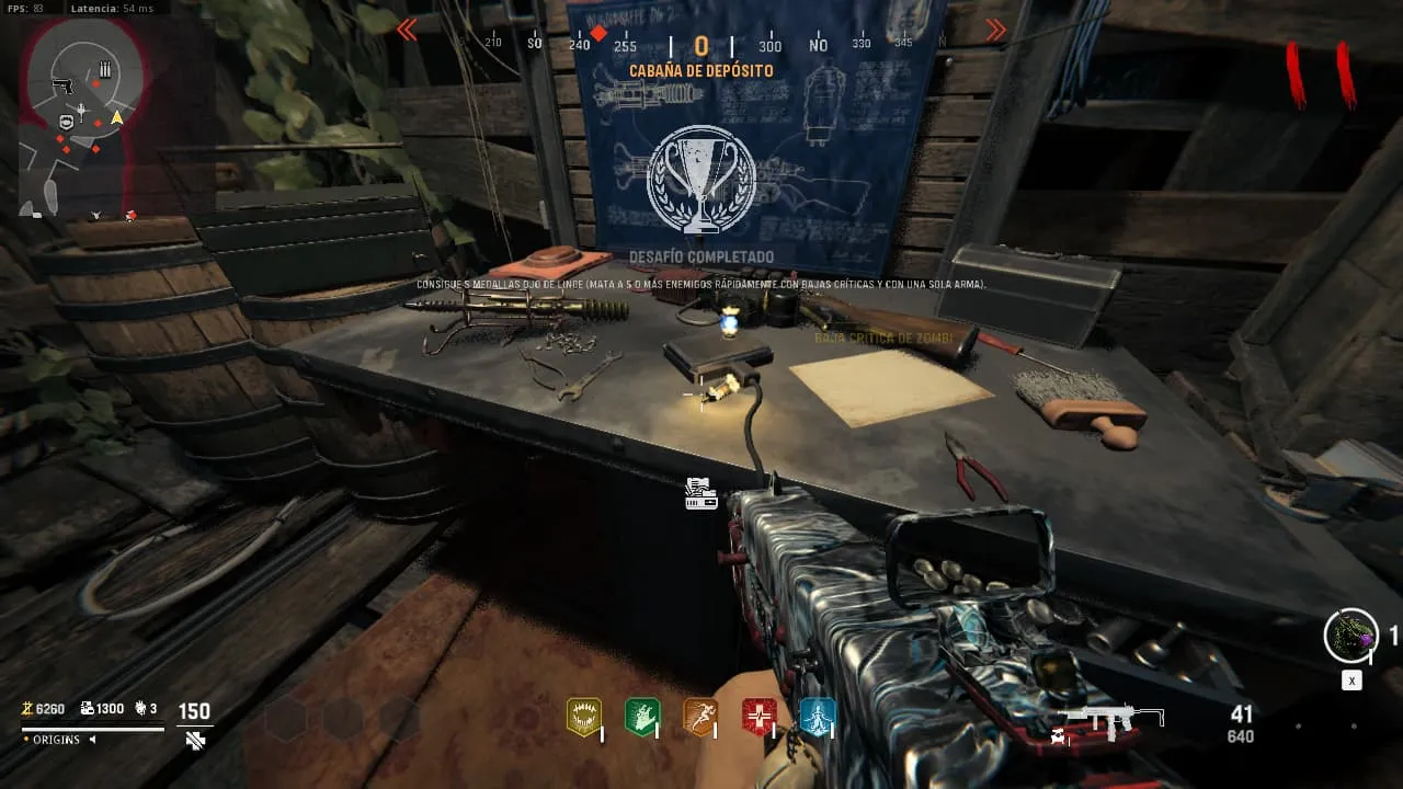 - Dirígete a Cabana de Deposito y empieza a matar Zombies utilizando la trampa eléctrica. Luego de utilizar la trampa, esta se romperá, coloca el fusible dentro de ella y continúa matando zombies