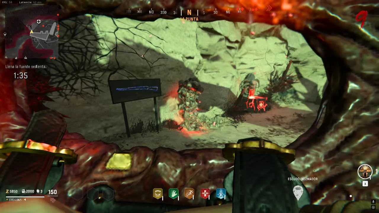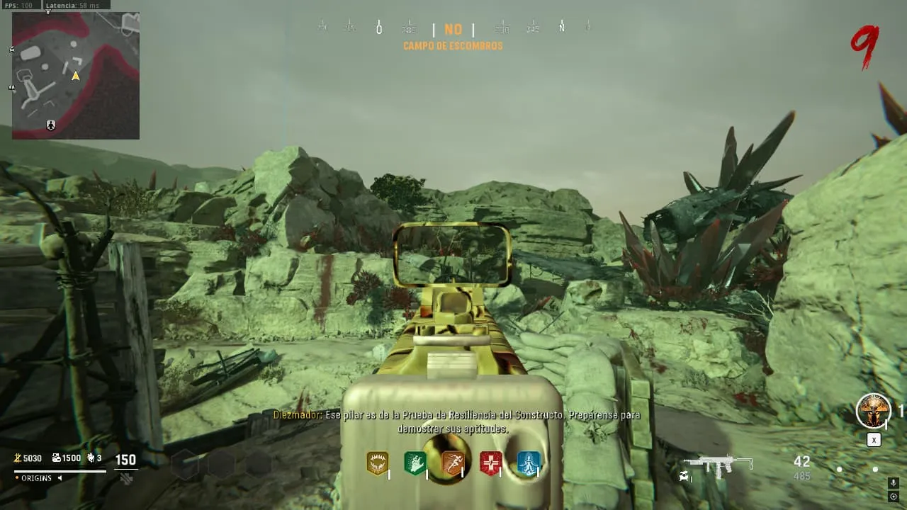 Prueba de Resiliencia. Para activar este desafío tendrás que dispararle a un cristal rojo cerca de la fuente de Quick Revive.
